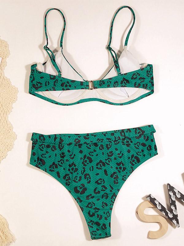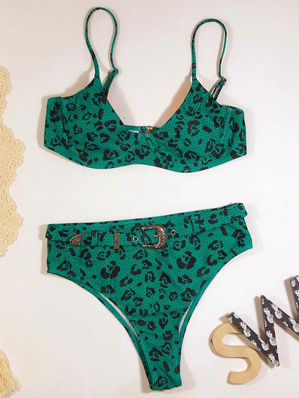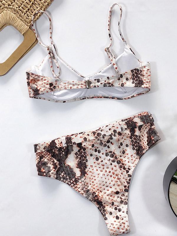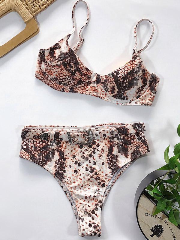 Sexy Spaghetti-Neck Sash Split Type Printing Bikini Swimsuit