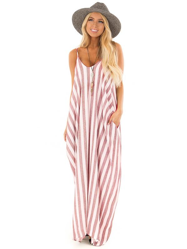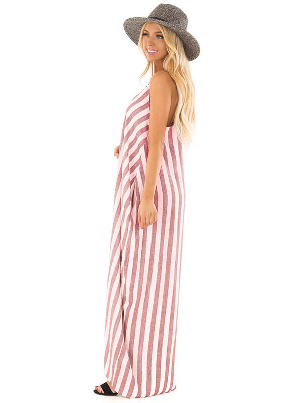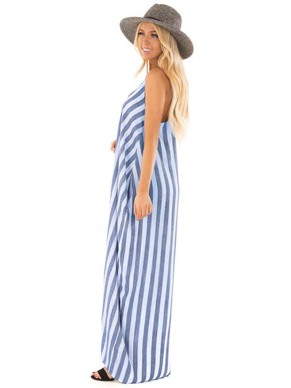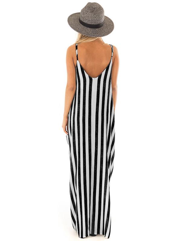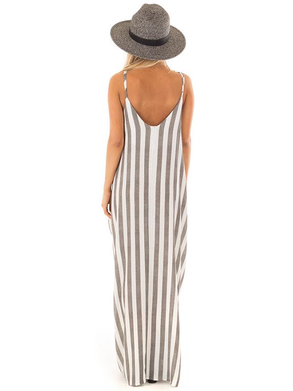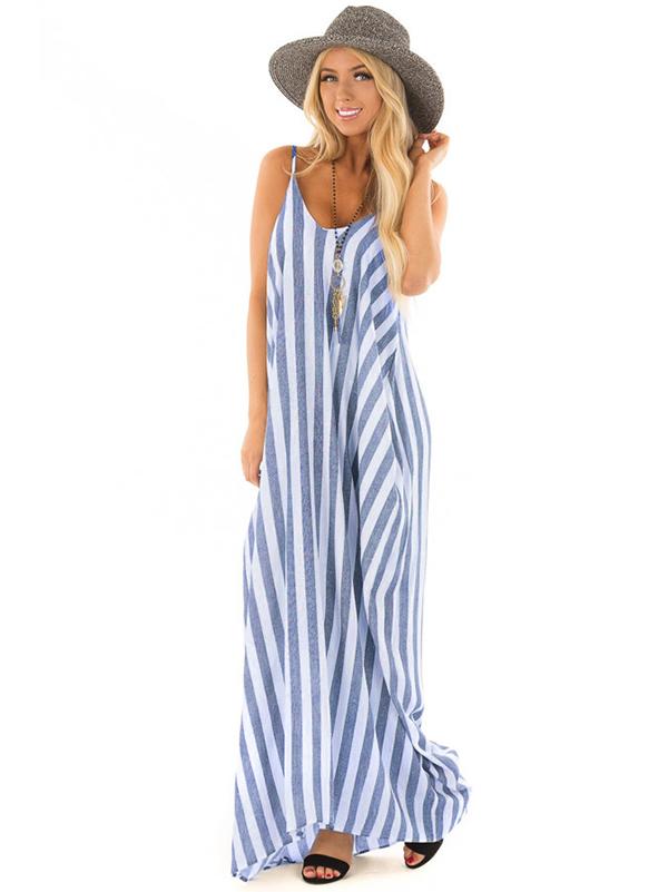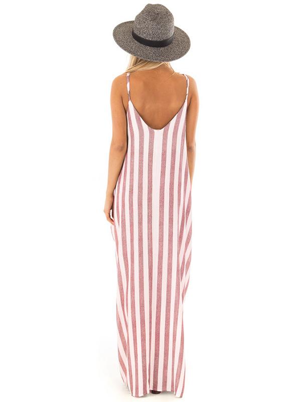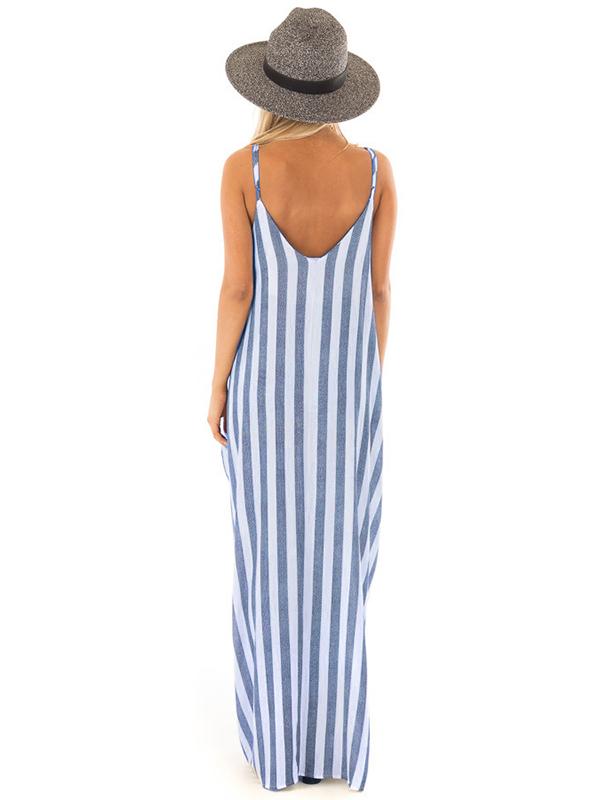 Sexy Spaghetti-neck Stripes Maxi Dresses