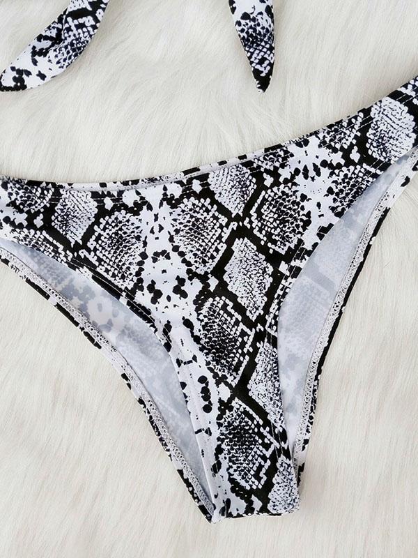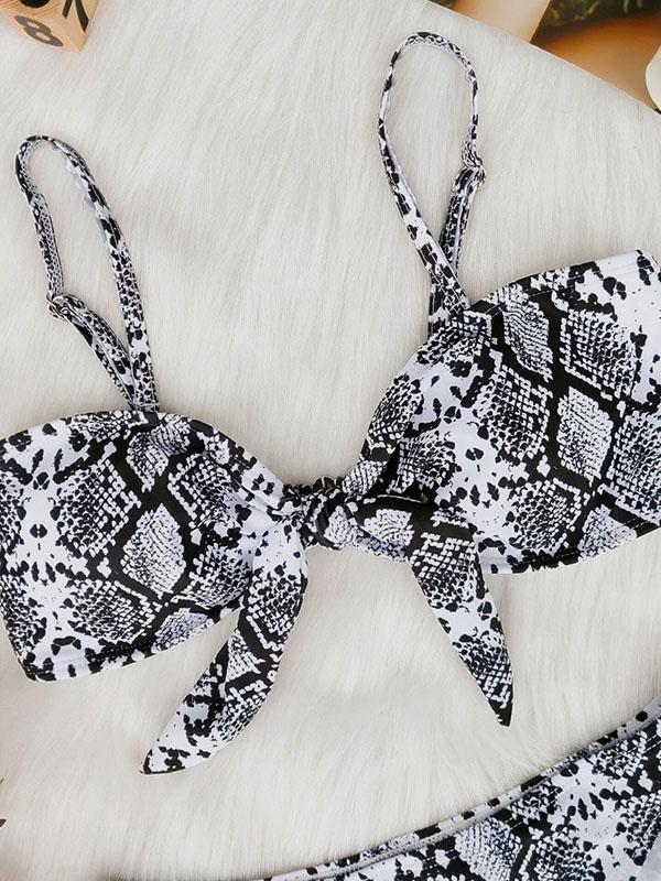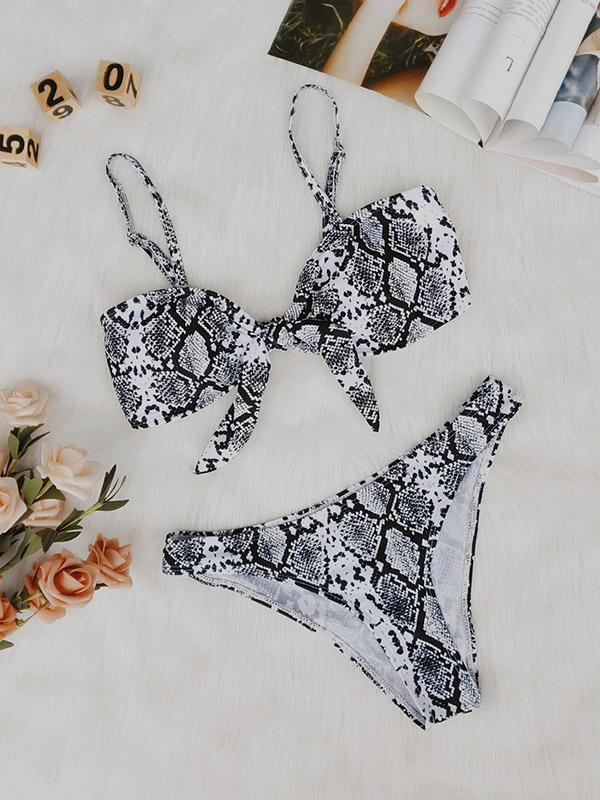 Sexy Spaghetti Strap Bow-embellished Snakeskin Bikini Set