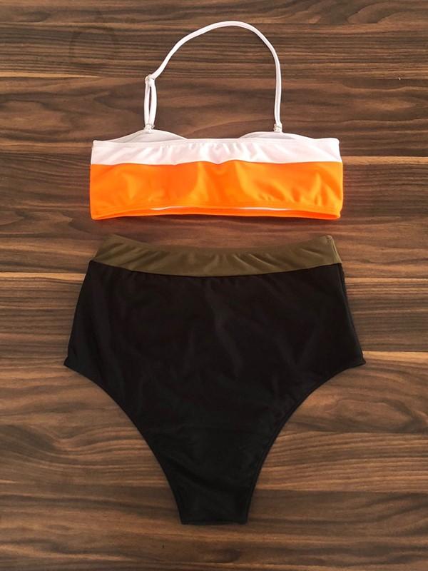 Sexy Strapless Clashing Colors Split Bikini Swimsuit