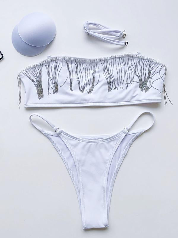 Sexy Strapless Tassels Split Bikini Swimsuit