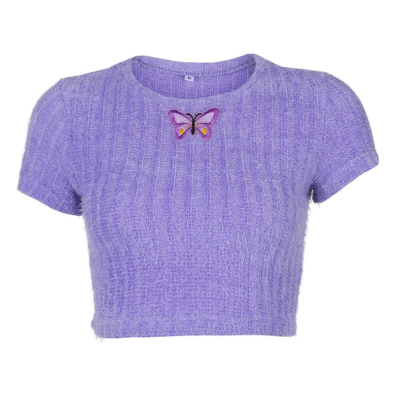 Sexy tight-fitting waist embroidered short embroidered T-shirt ACTIVEWEAR