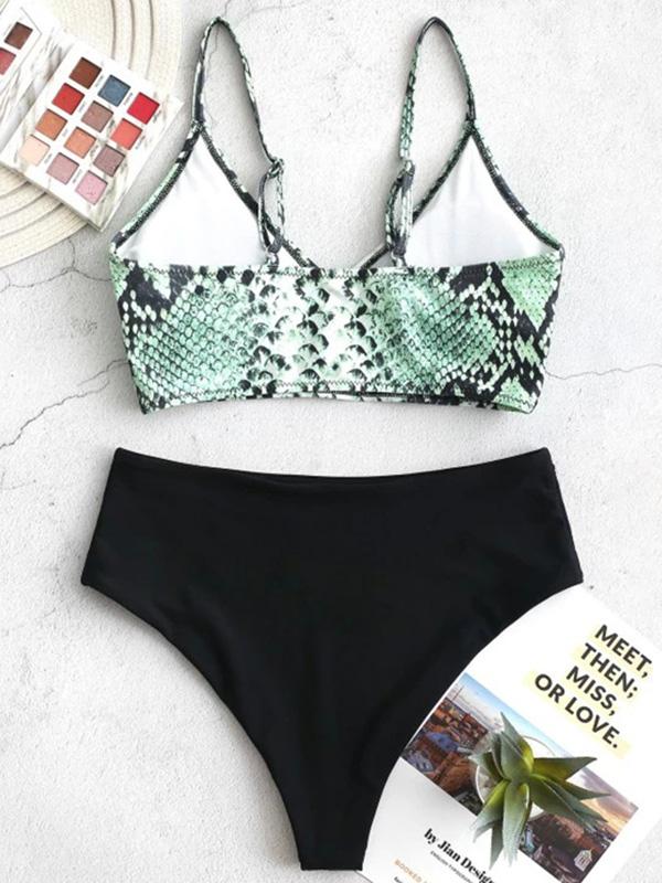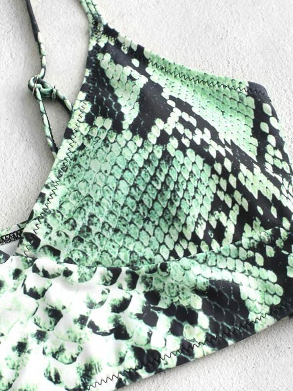 Sexy V-Neck Spaghetti-Neck Snake Pattern Split Type Bikini Swimsuit