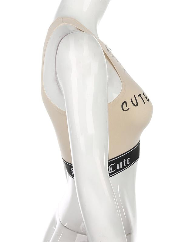 Sexy Wrap Letters Printed Zipper Vest Top