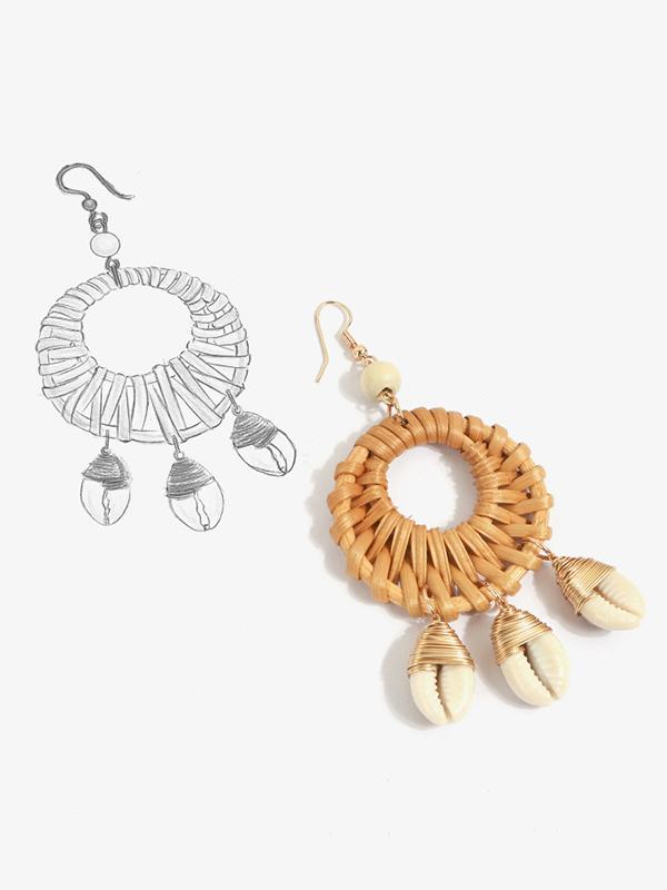 Shell Hollow Rattan copper wire Earring Accessories