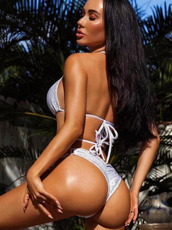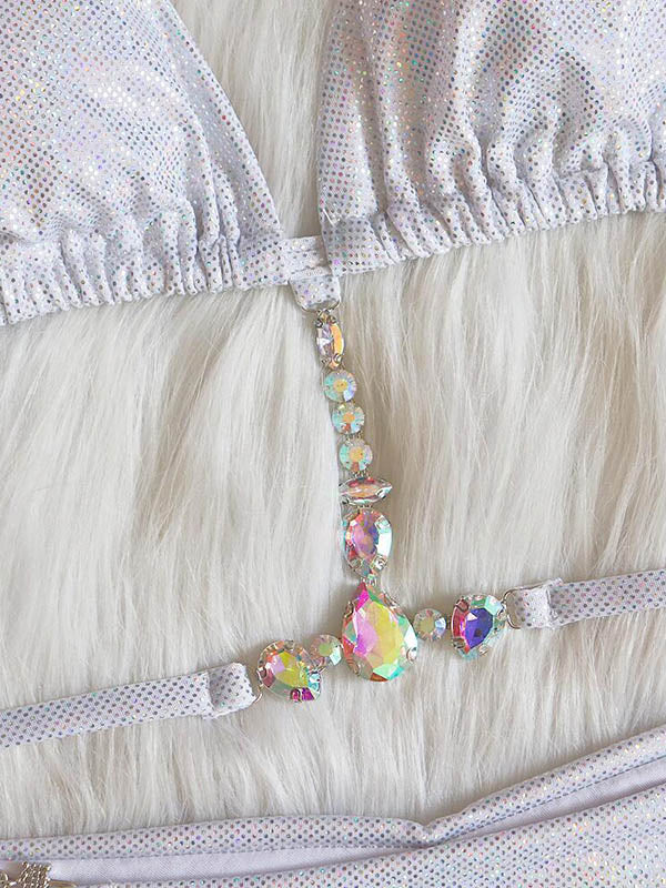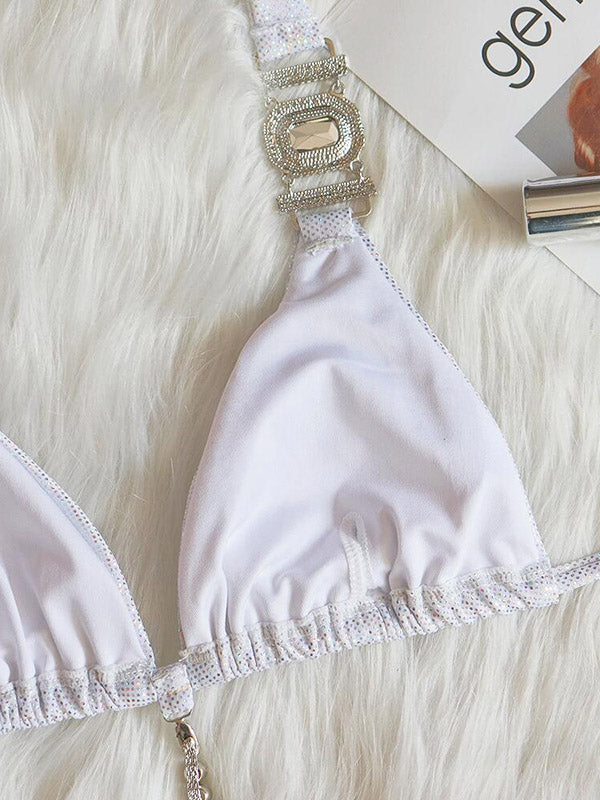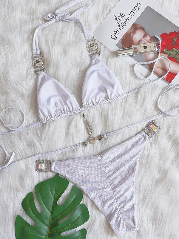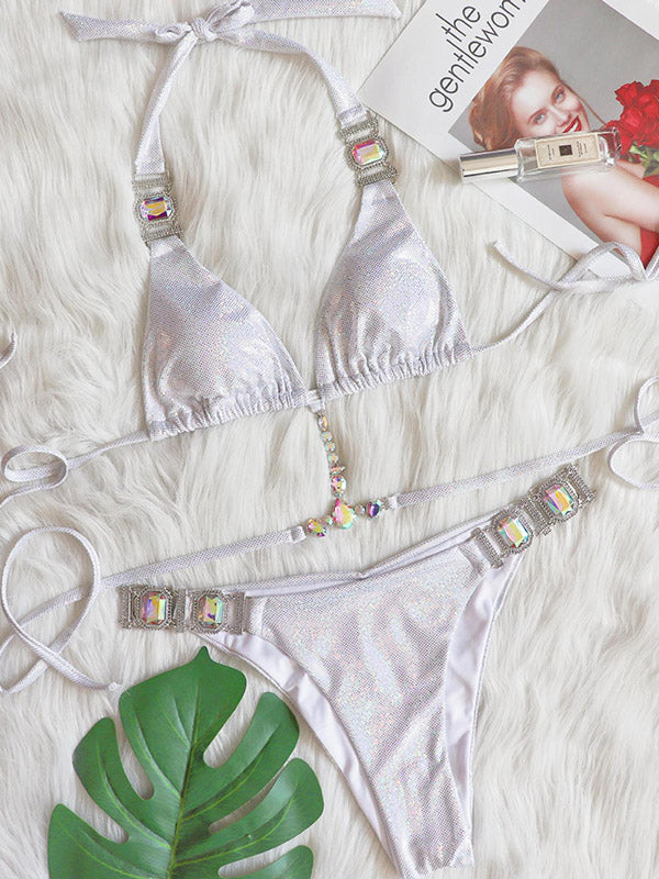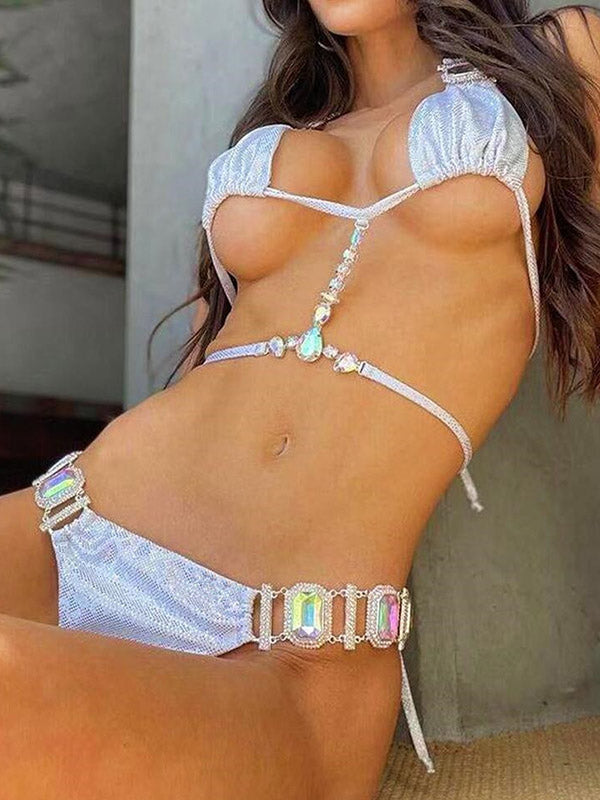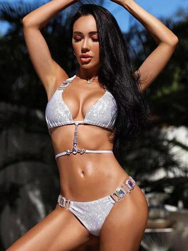 Shiny Crystal Beaded Decorated Bandage Bikini Swimwear