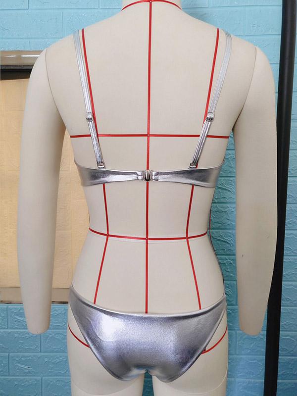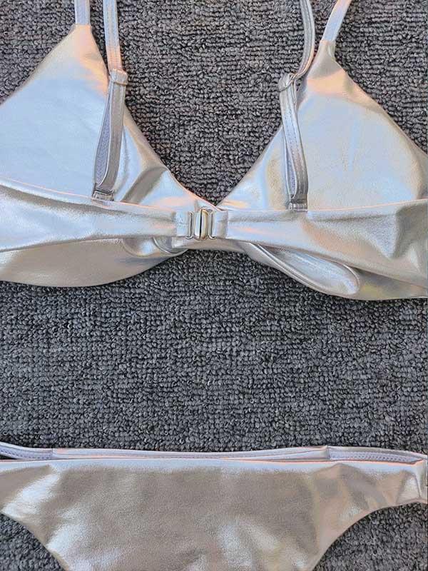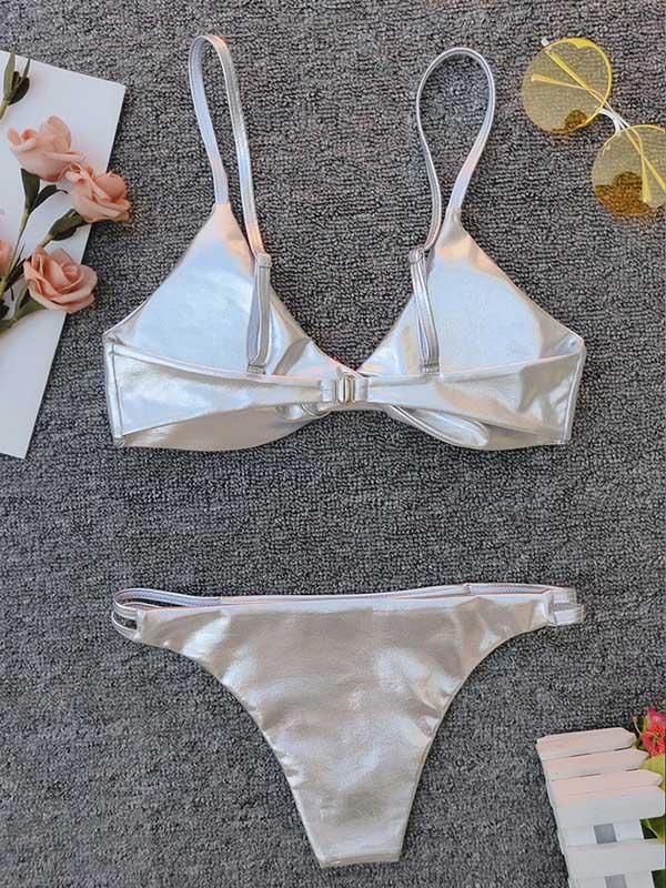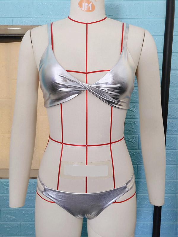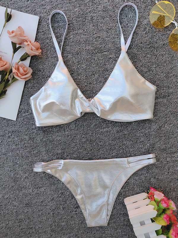 Shiny Plain Twist Sexy Bikini Swimsuit