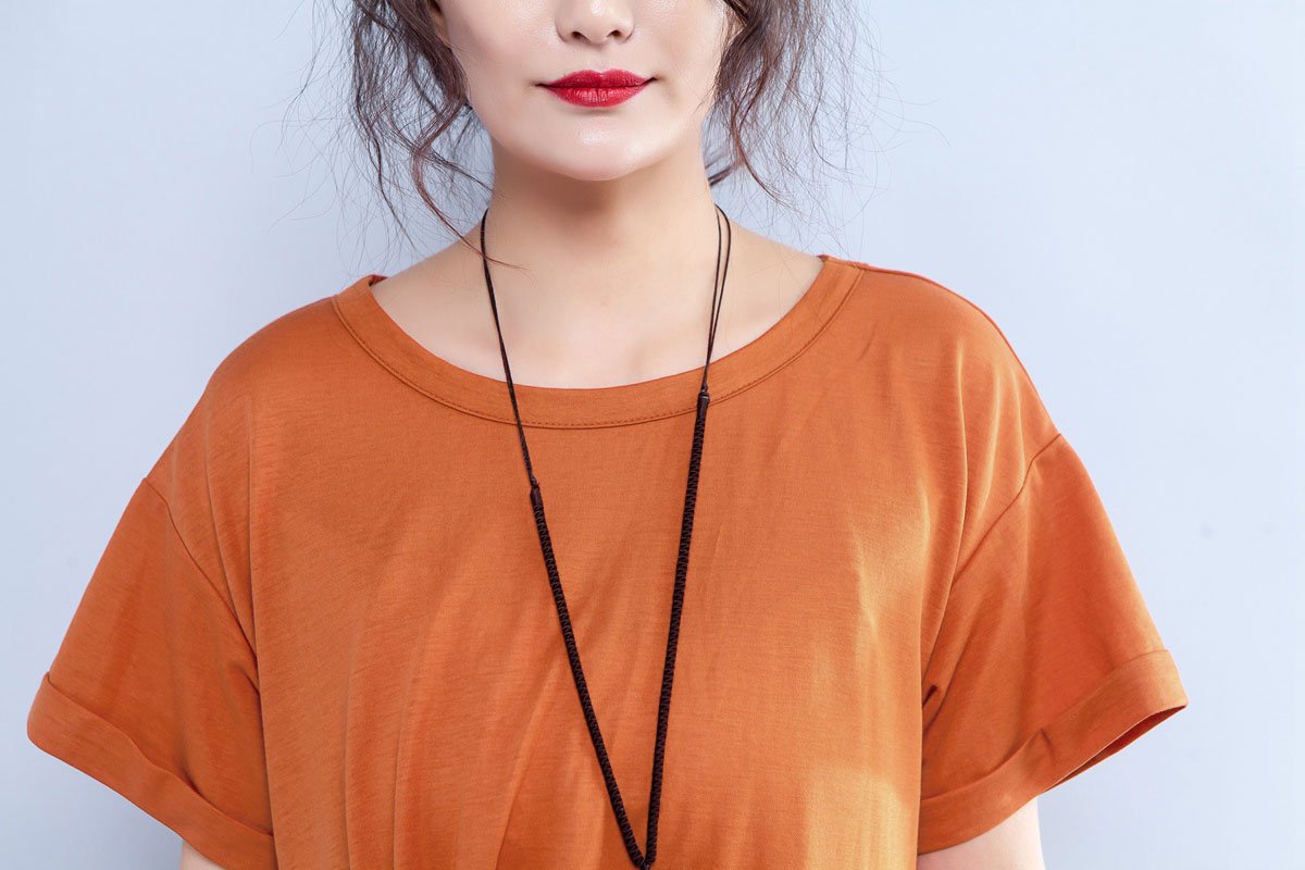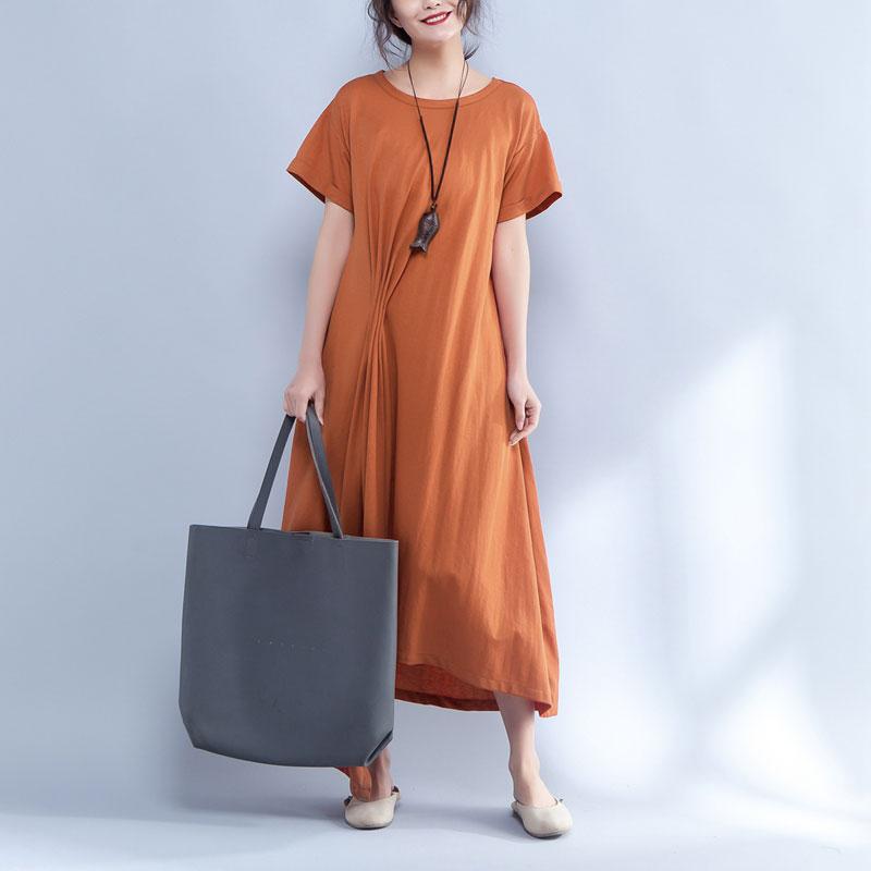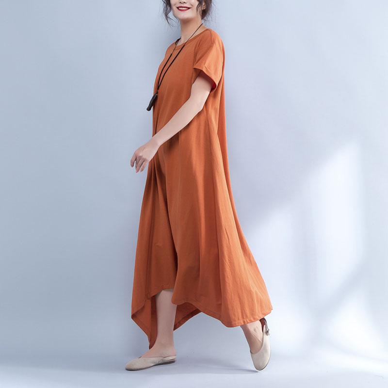 Short Sleeve Round Neck Summer Irregular Orange Dress