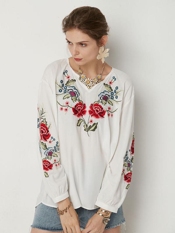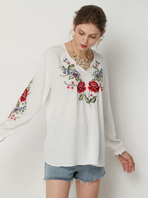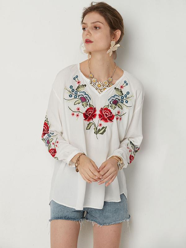 Short Sleeves V-neck Floral Blouses&shirts Tops