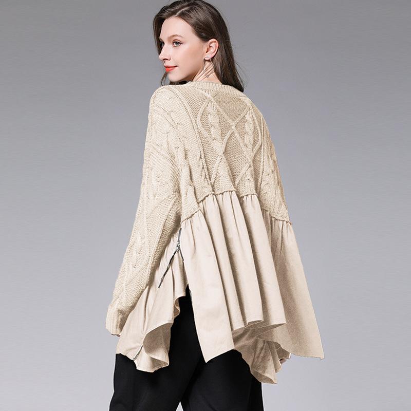 Side Zipper Knit Stitching Fake Two-piece Sweater