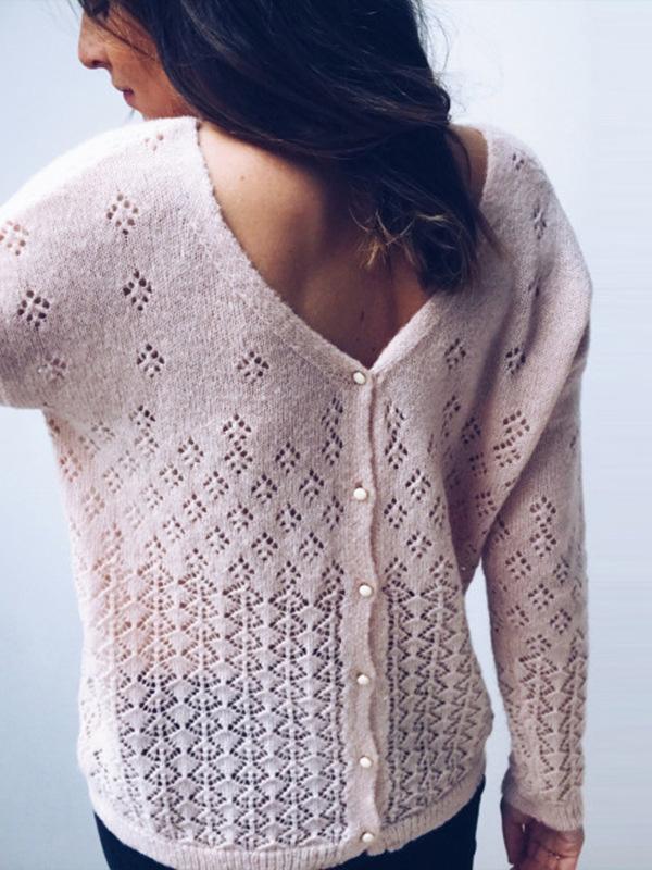 Simple 2 Colors Solid Color V-neck Sweater Tops