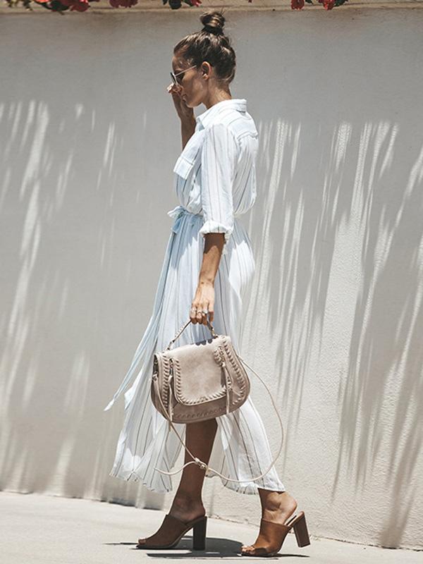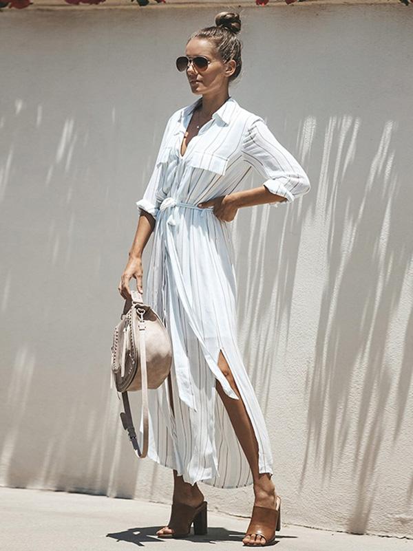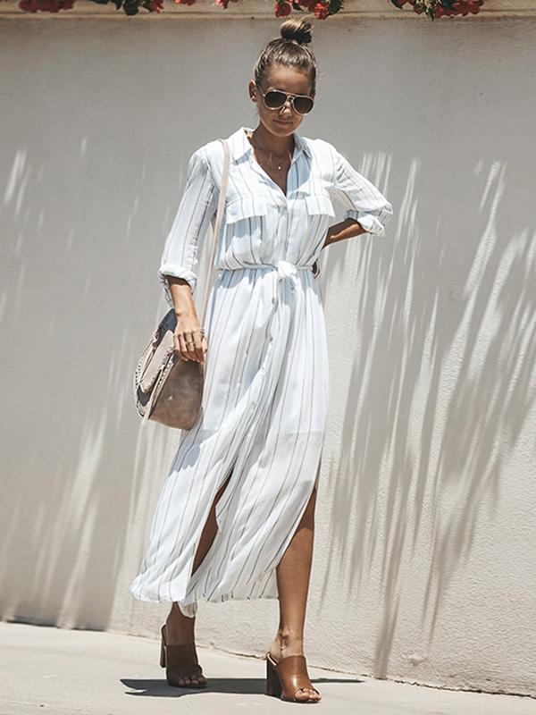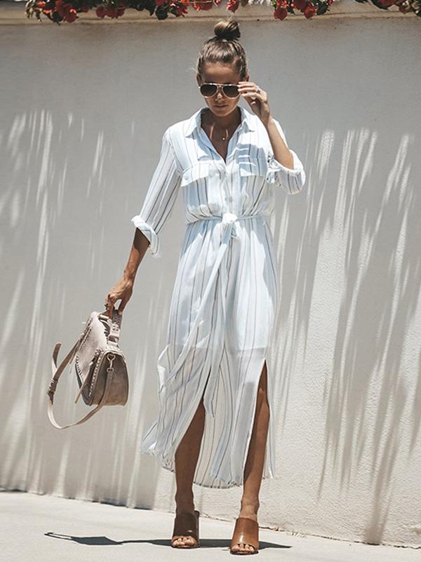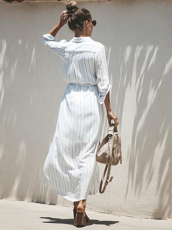 Simple Bohemia Striped Shirt Maxi Dress