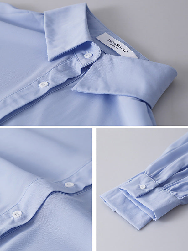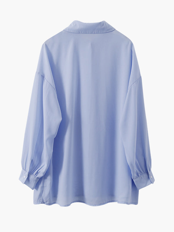 Simple Buttoned Lapel Sun Protection Long Sleeves Blouse Tops