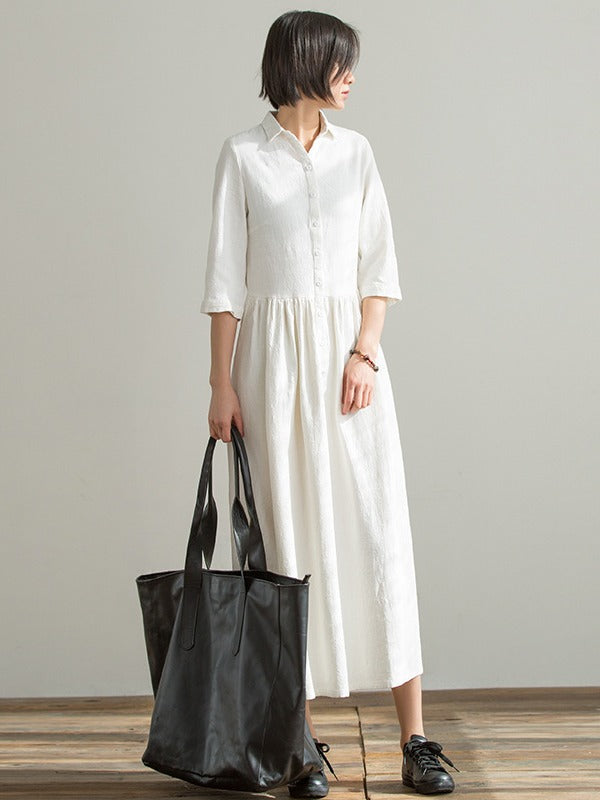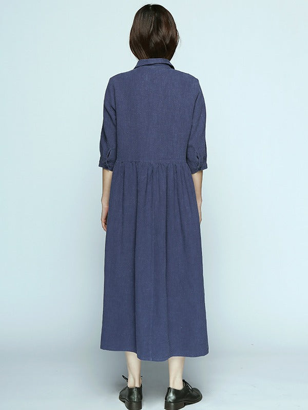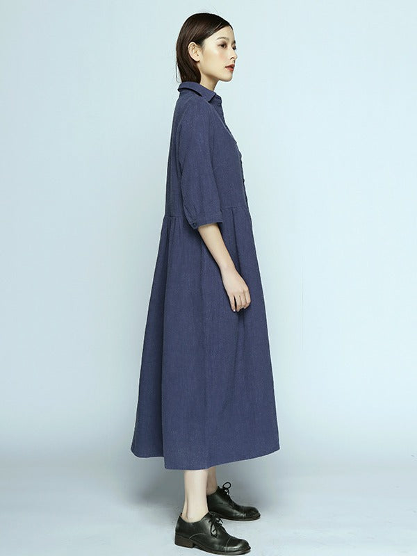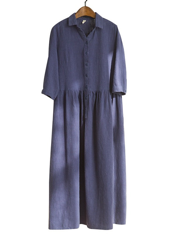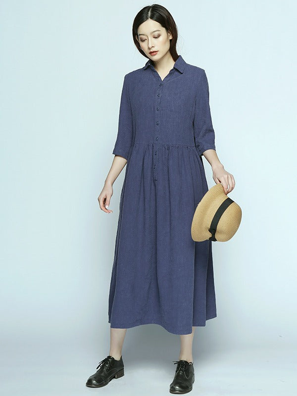 Simple Casual Half Sleeve Ramie Cotton Long Dress