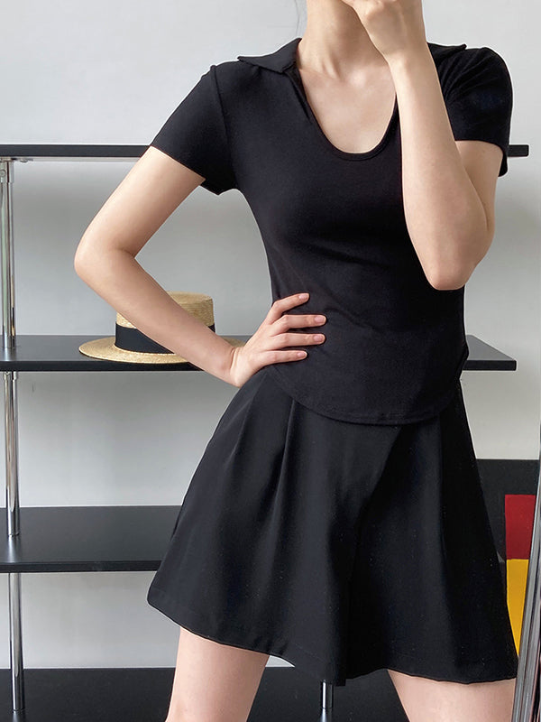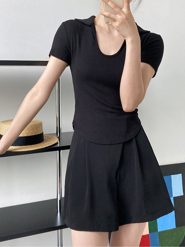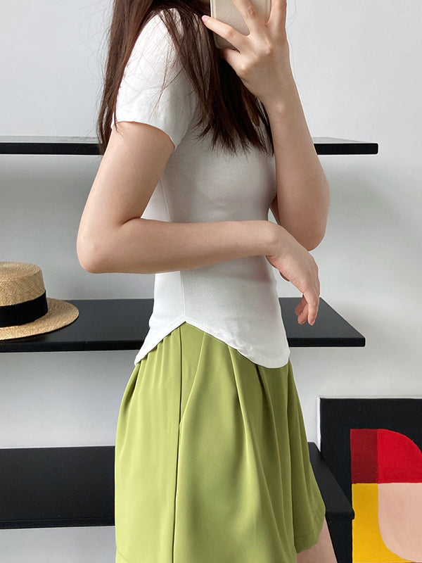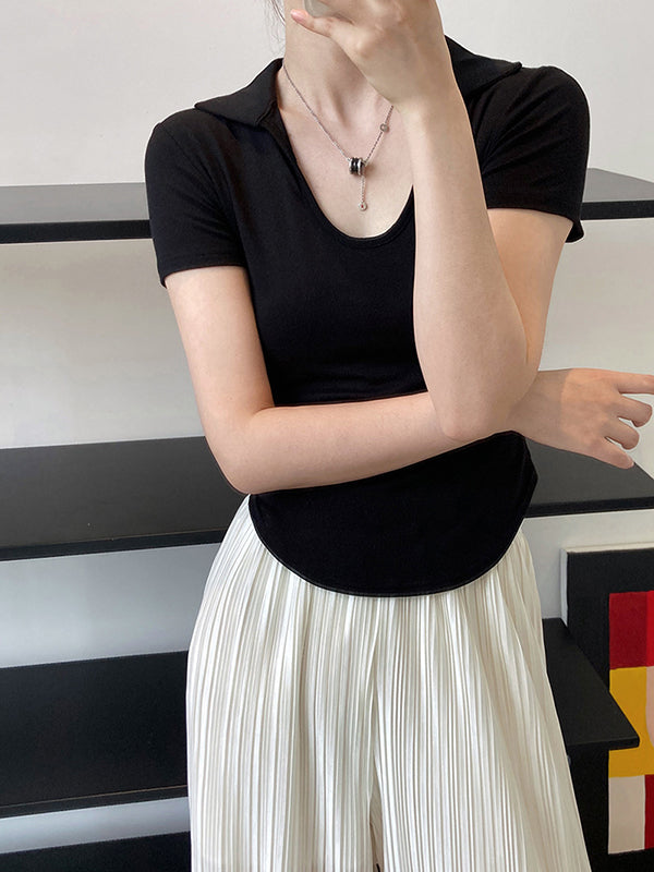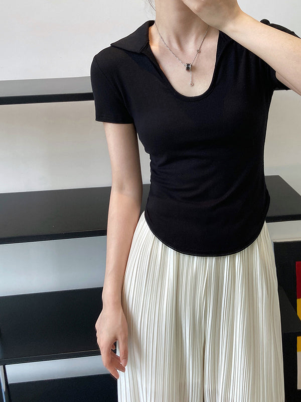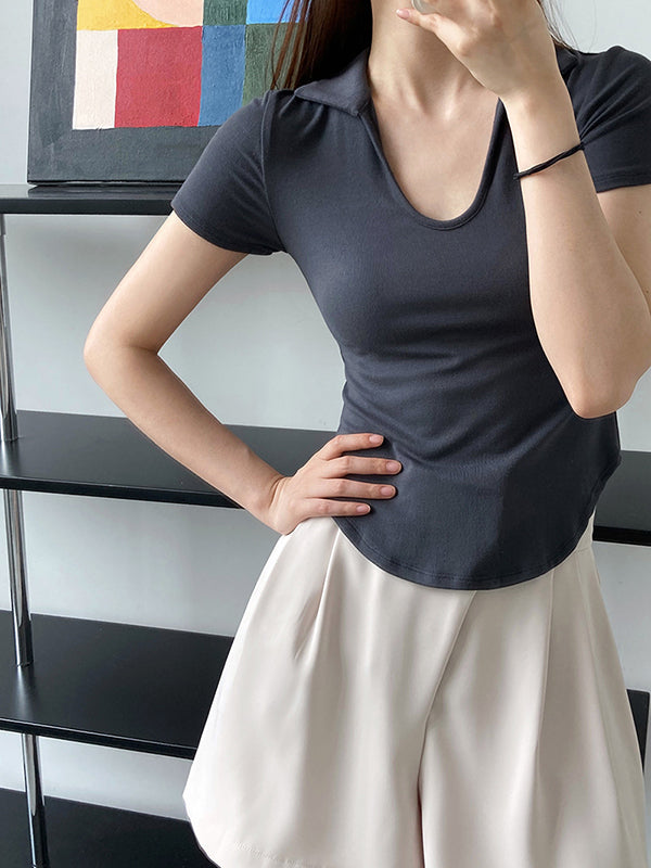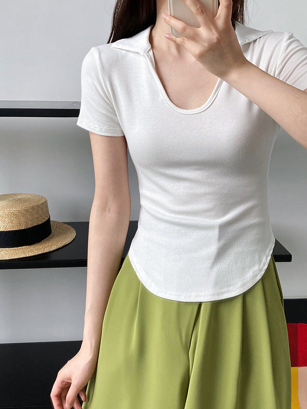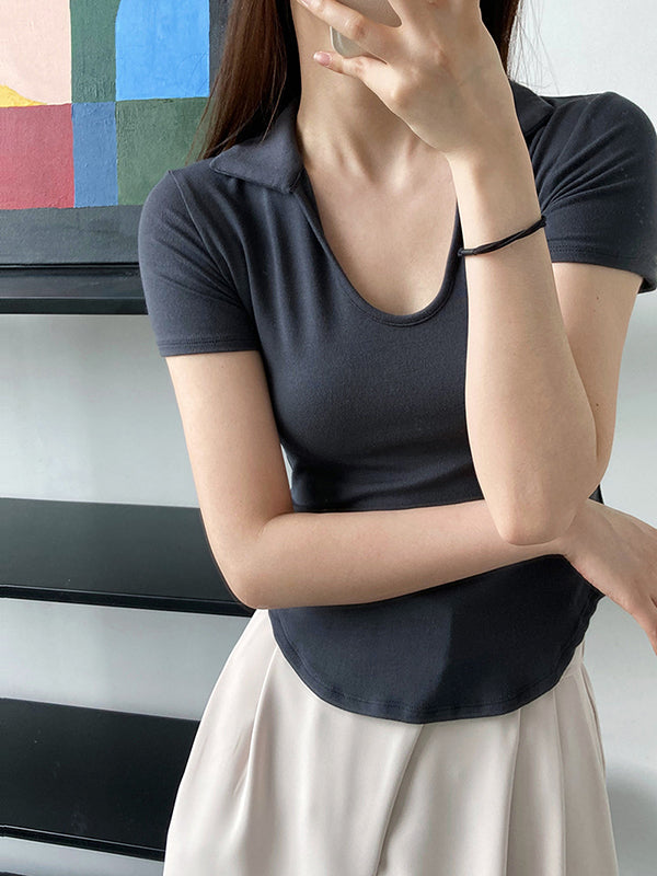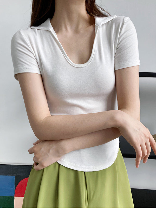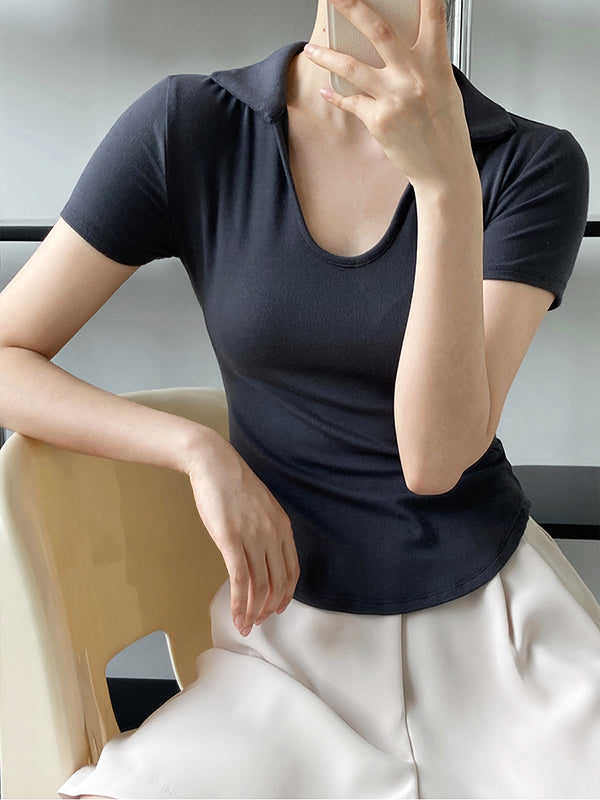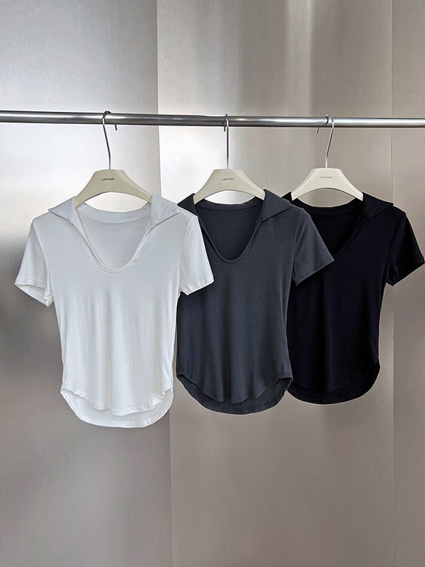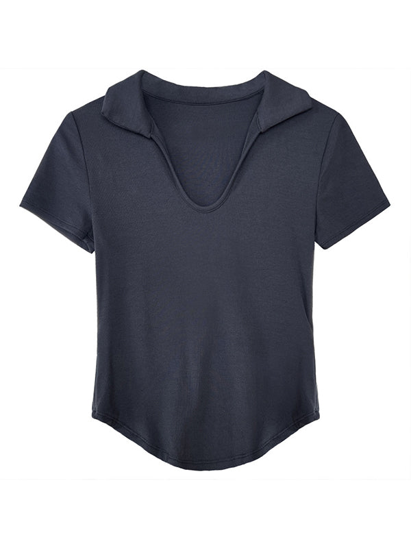 Simple Casual Solid Color U-Neck T-Shirt Top