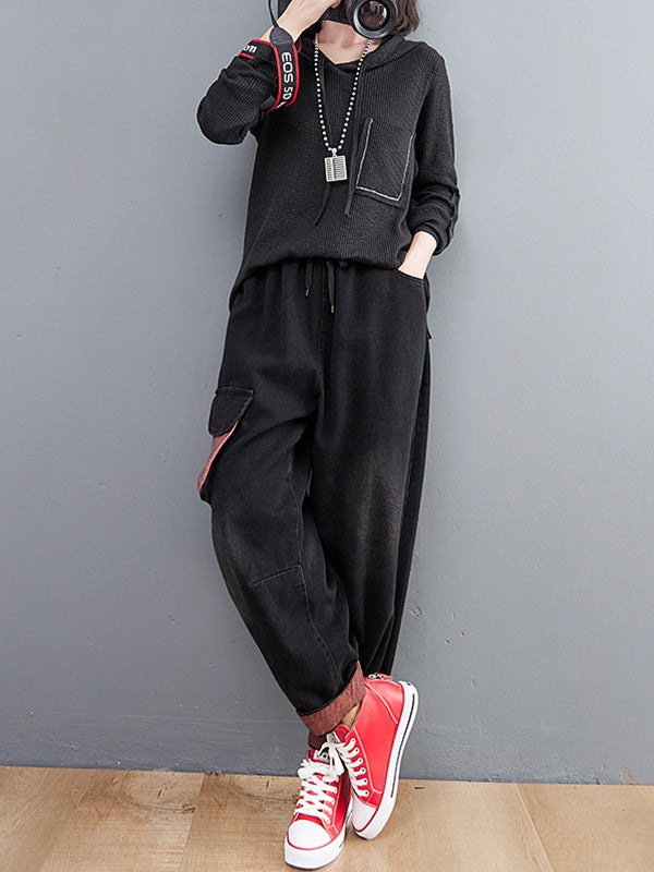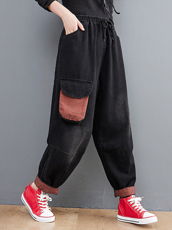 Simple Empire Waisted Drawstring Loose Harem Jean Pants