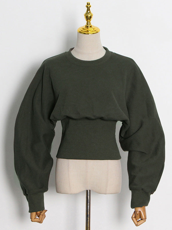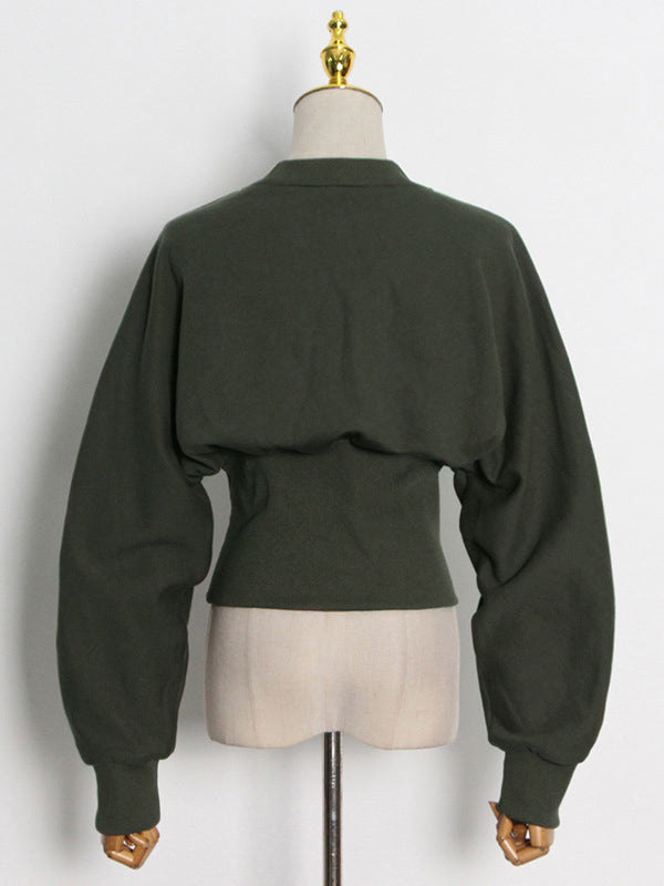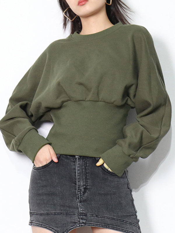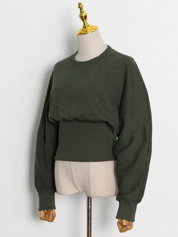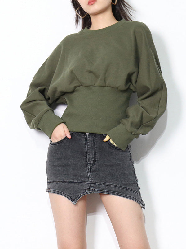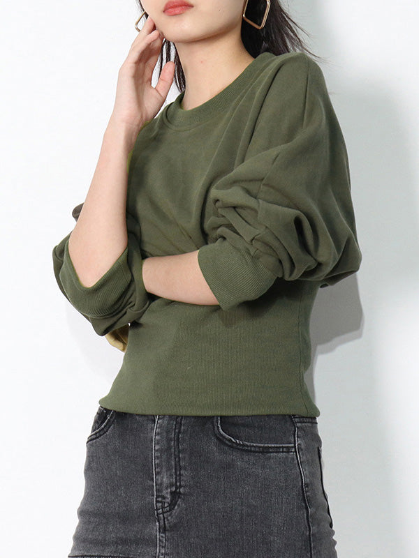 Simple Long Sleeves Green Split-Joint Sweatshirt Top