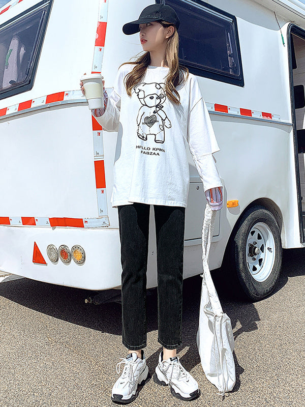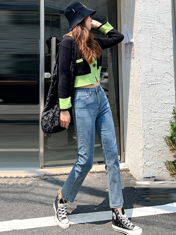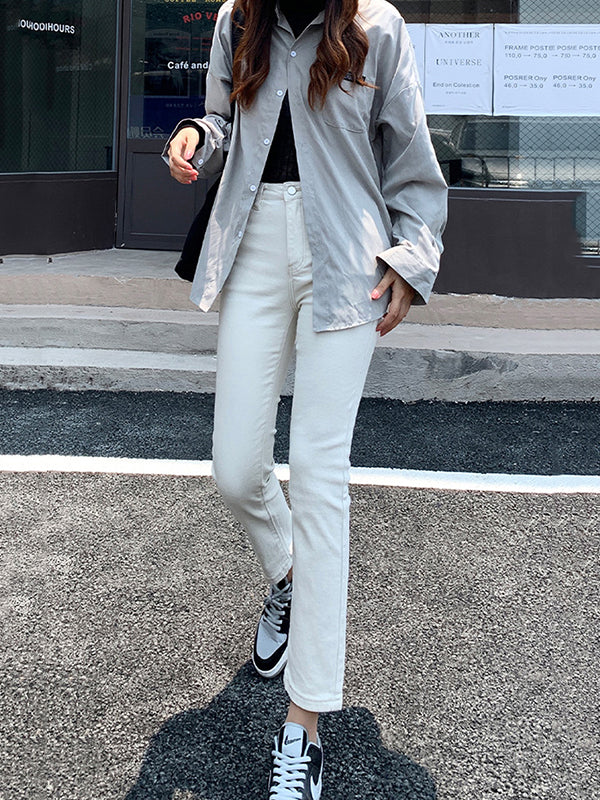 Simple Loose High Waisted Jean Cropped Pants Bottoms