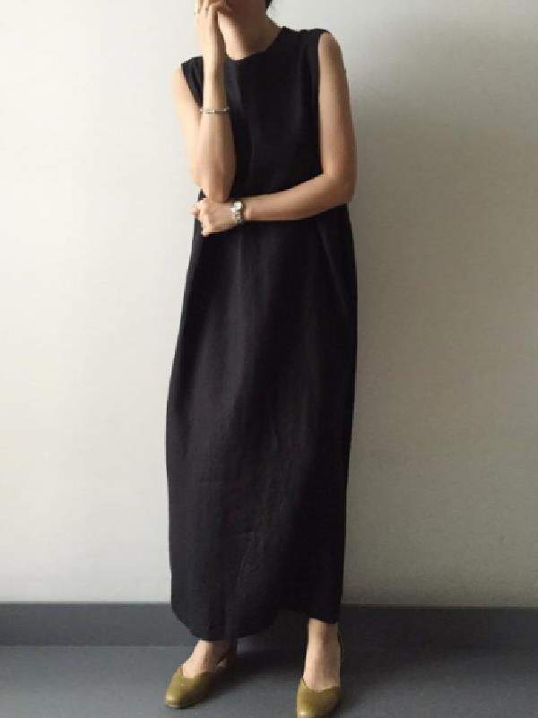 Simple Loose Split-side Sleeveless Long Dress
