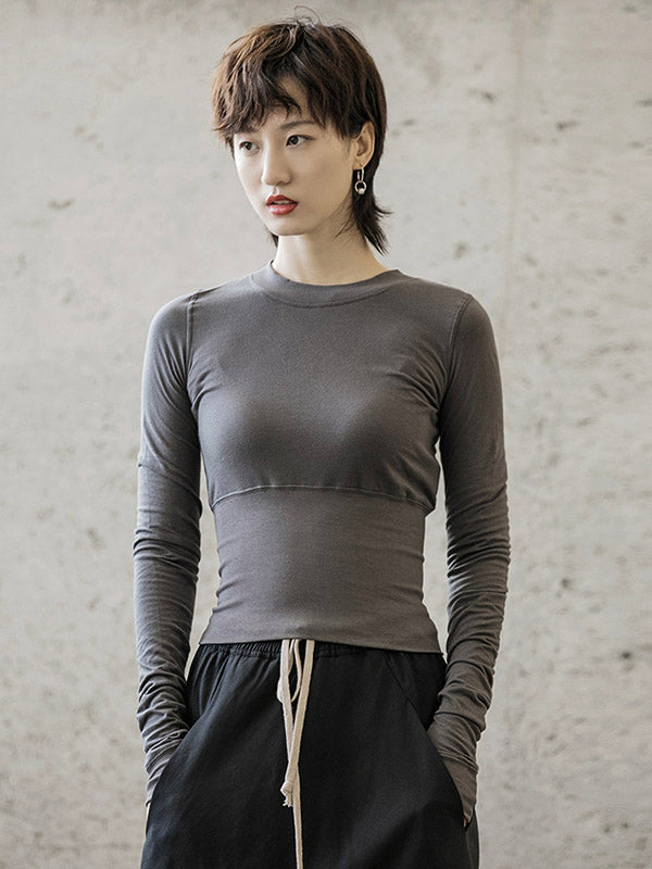 Simple Solid Color Long Sleeves Round-Neck T-Shirt Tops