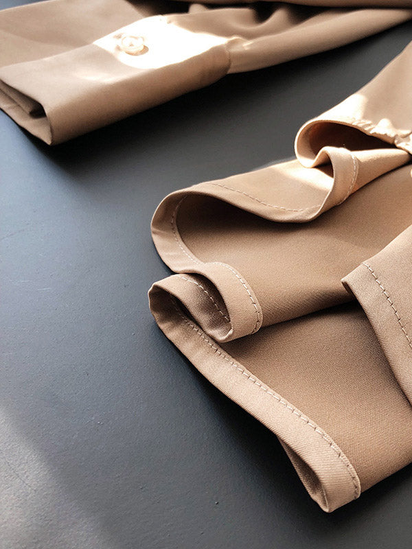 Simple Solid Color Satin Chiffon Long Sleeve Blouse