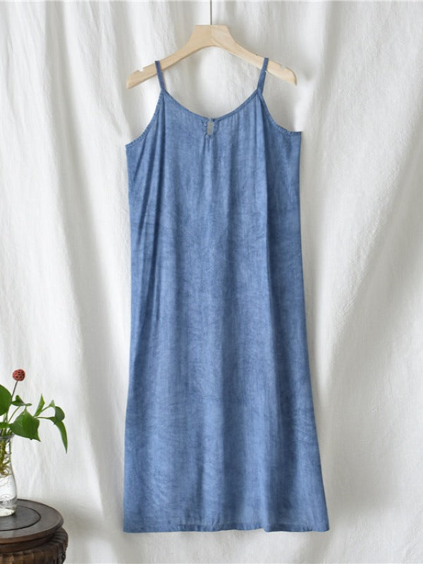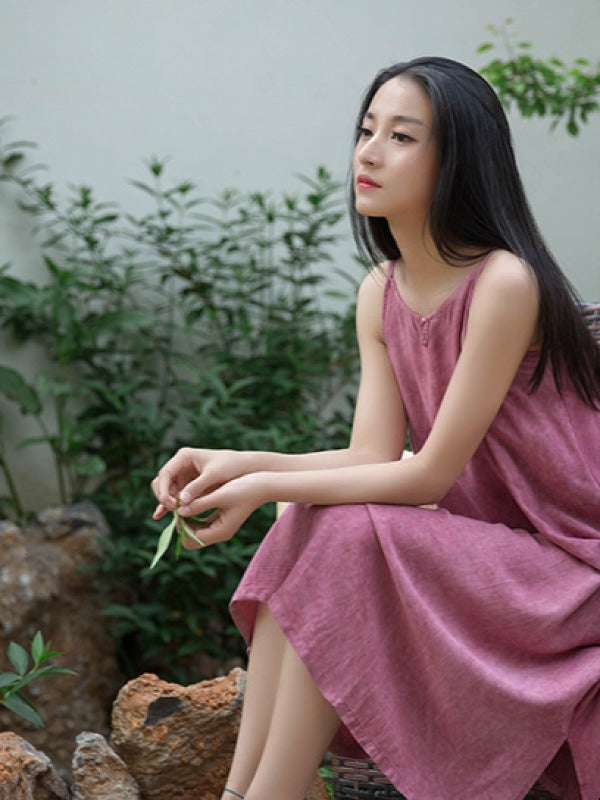 SIMPLE SOLID PLEATED SLEEVELESS MIDI DRESS