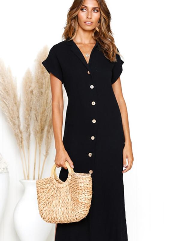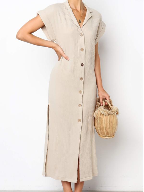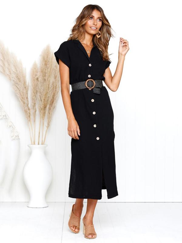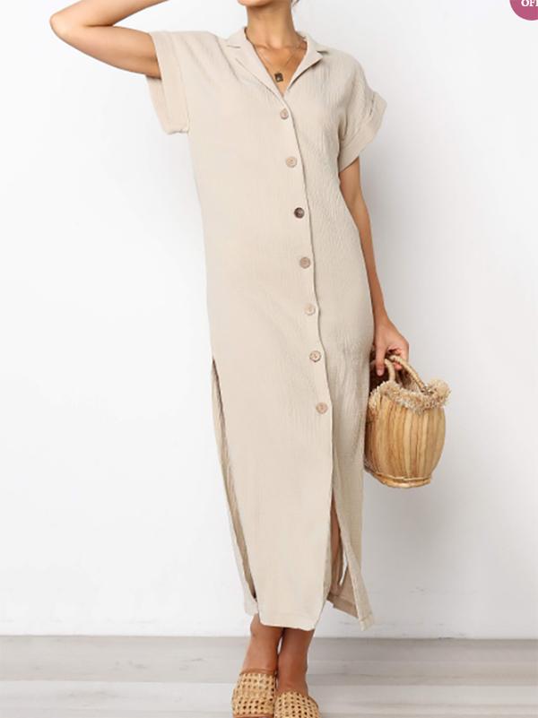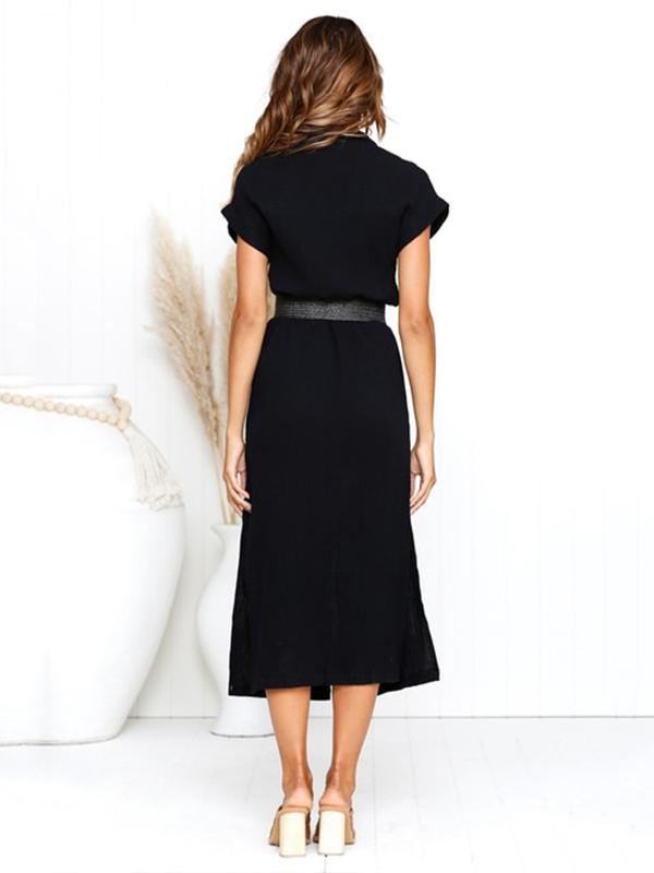 Simple Split-side V-neck Shirt Midi Dress