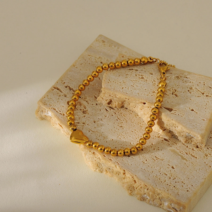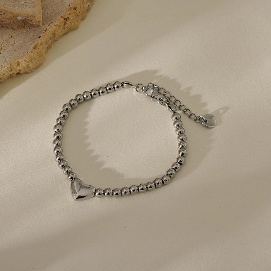 Simple Style Classic Style British Style Heart Shape 304 Stainless Steel ball chain Bracelets In Bulk Stainless Steel Bracelets