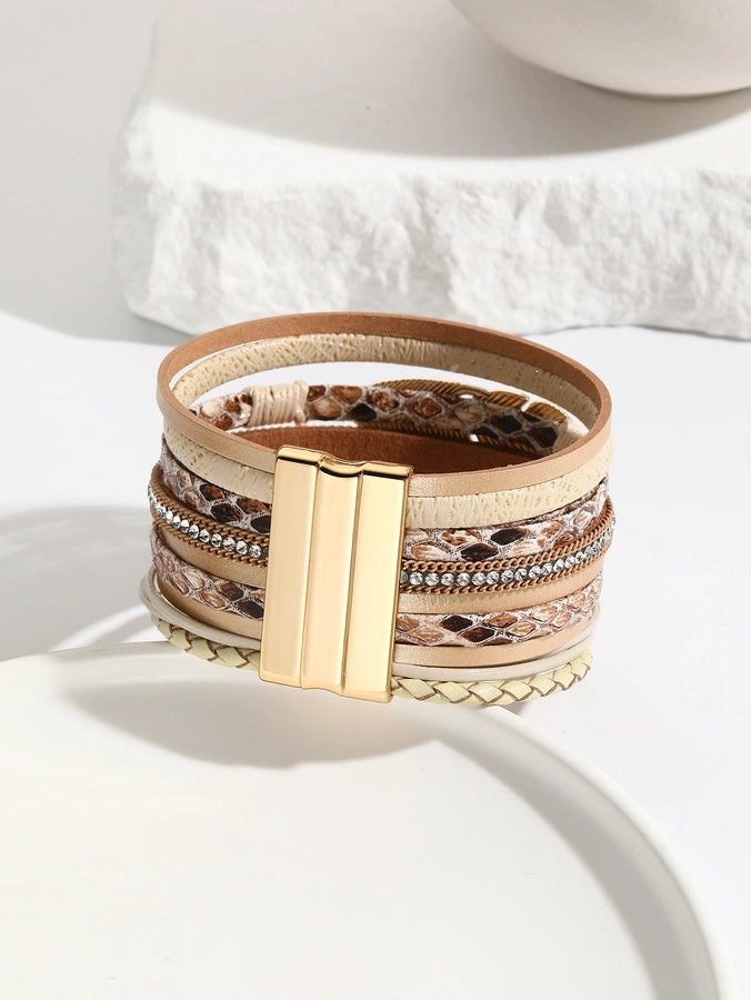Simple Style Feather Pu Leather Woven Chain Wrap Bracelets
