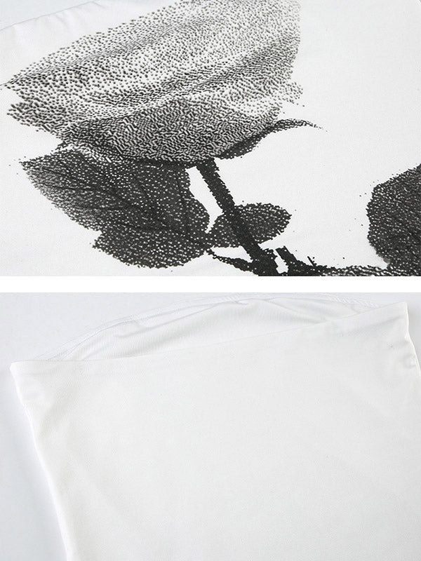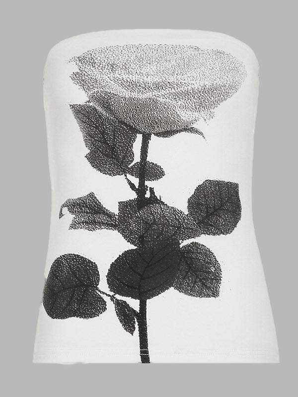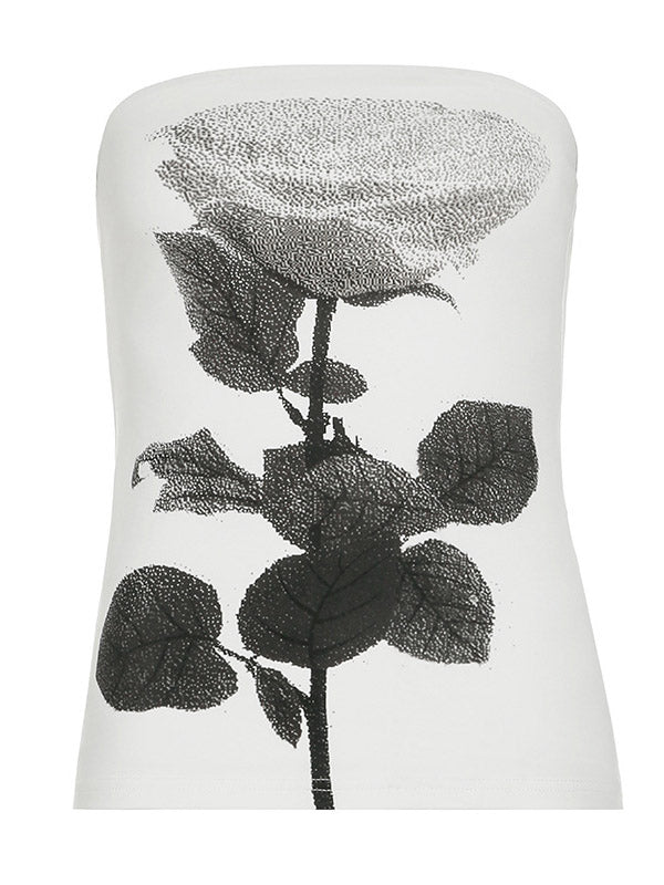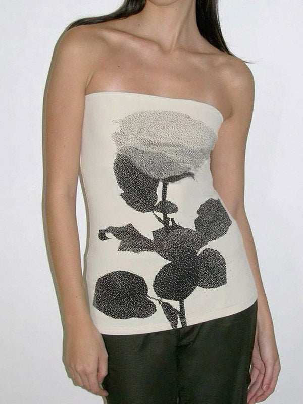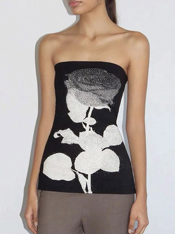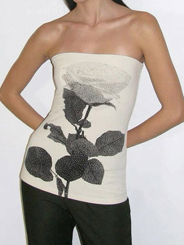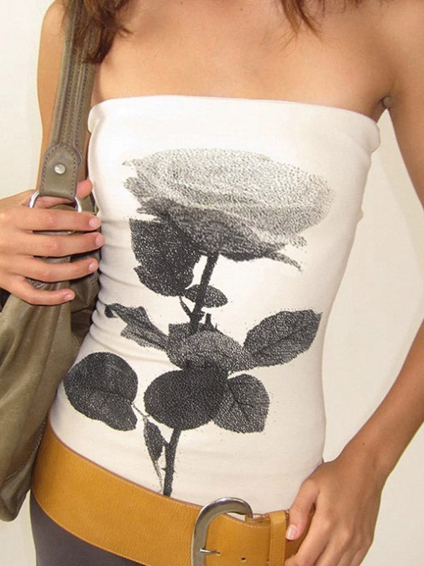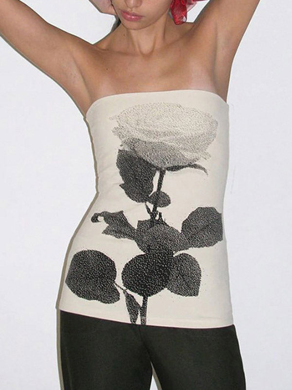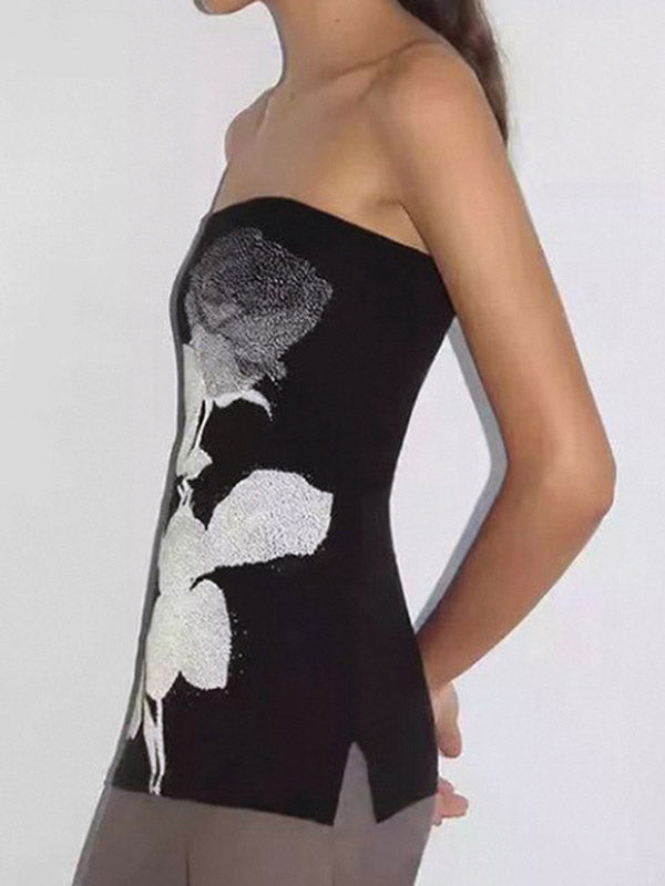 Skinny Sleeveless Contrast Color Flower Print Split-Side Tube Vest Top