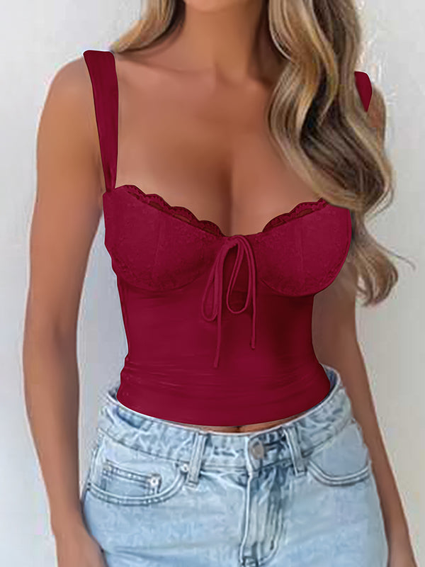 Skinny Sleeveless Solid Color Tied Spaghetti-Neck Camis