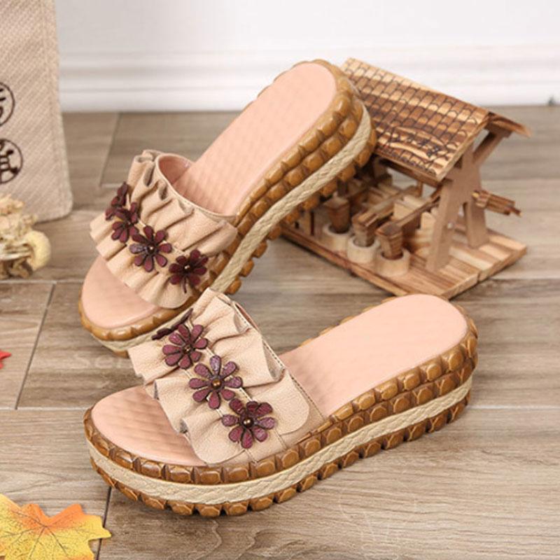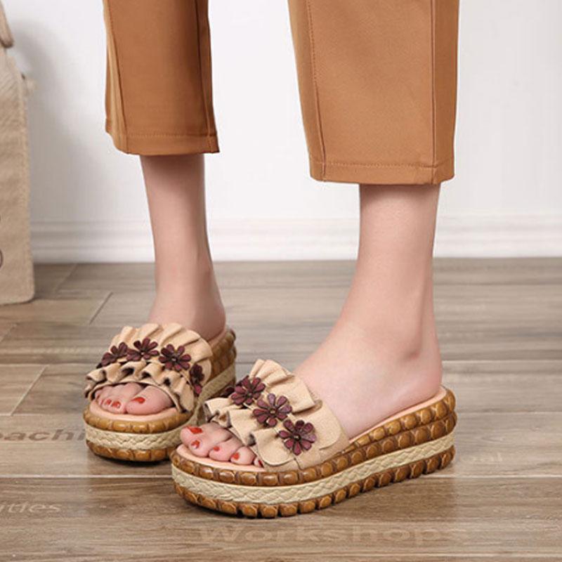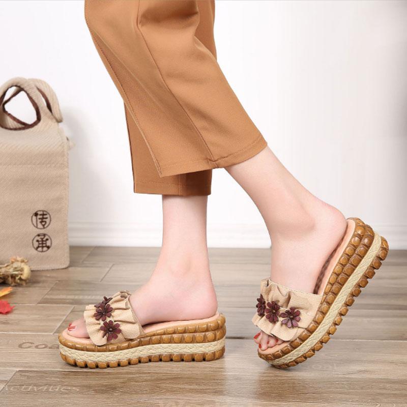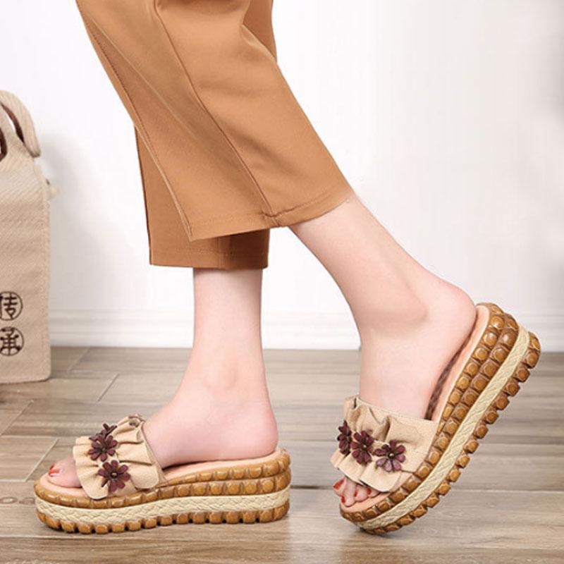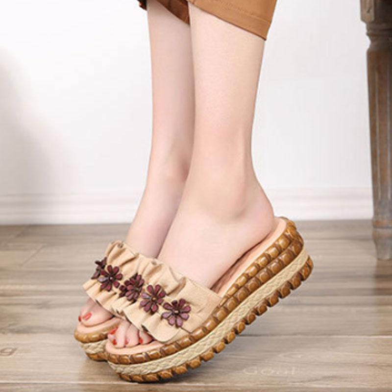 Slope Heel Thick Bottom Yellow Slippers Women Beach Shoes
