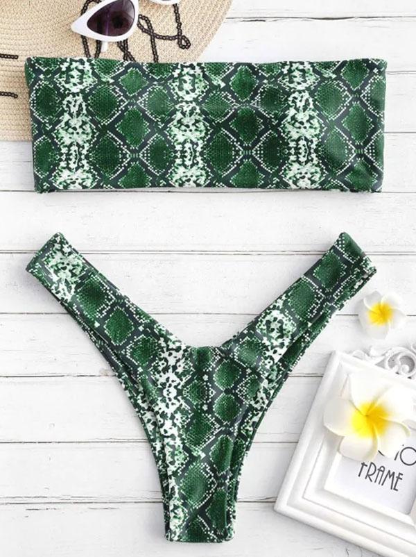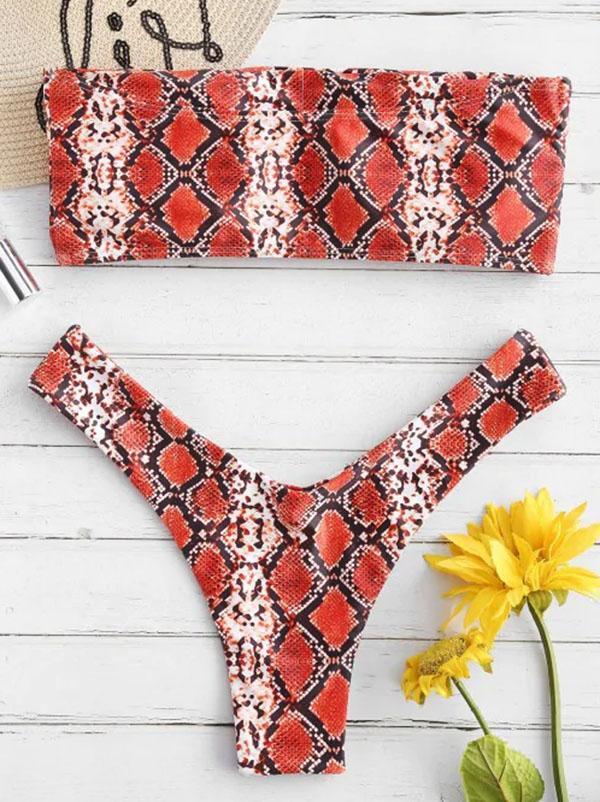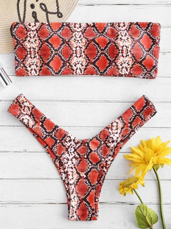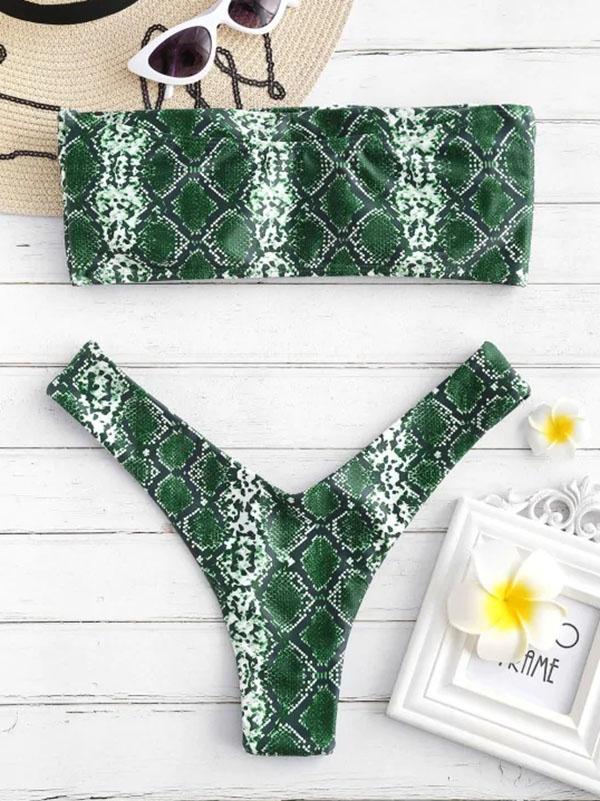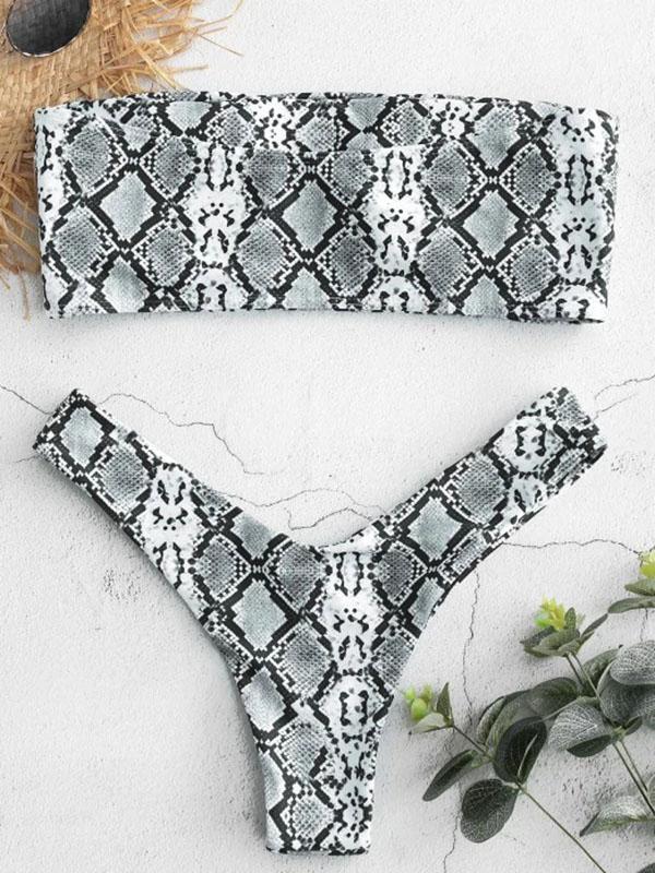 Snakeskin Printed Bandeau Bikinis Swimwear