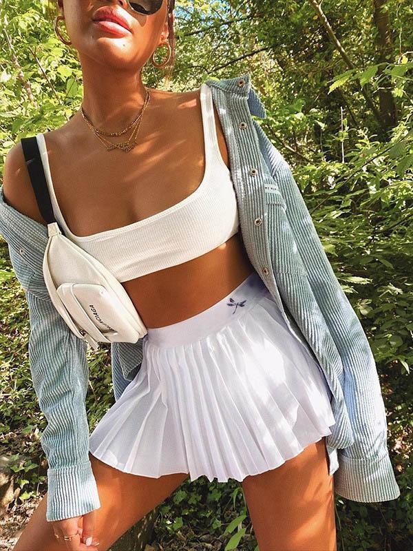 Solid Color A-Line Pleated Skirts