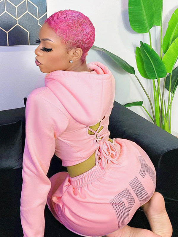 Solid Color Back Bandage Exposed Navel Hoodies&Sweatshirt