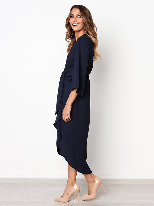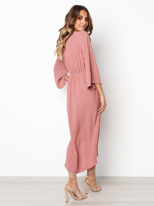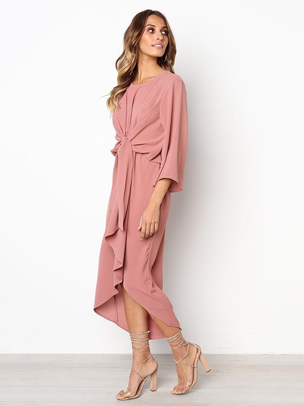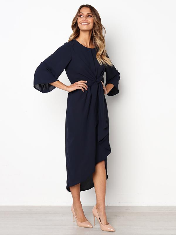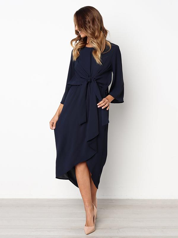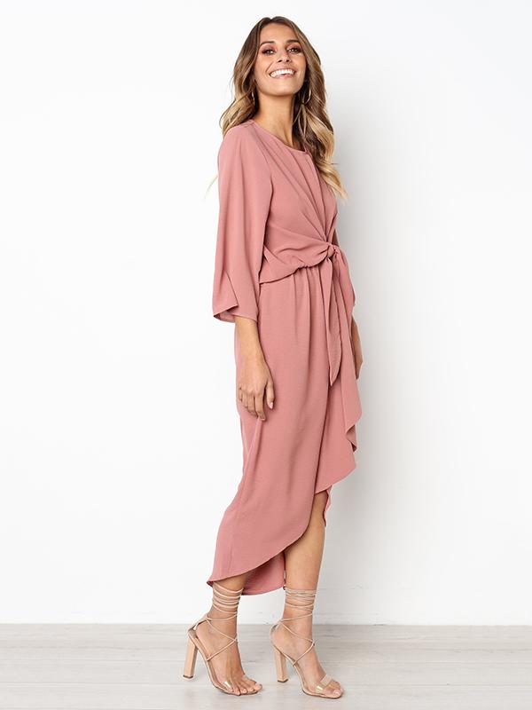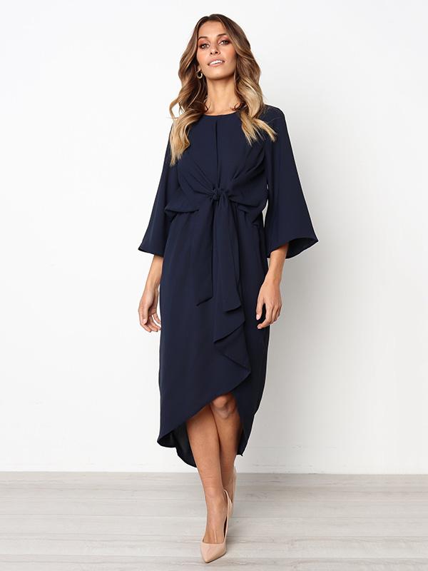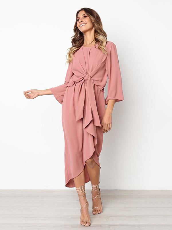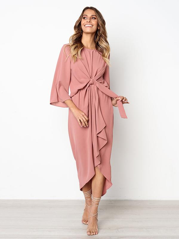 Solid Color Bandage Fabala Long Sleeves Midi Dress