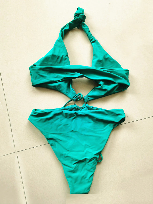 Solid Color Belly-Hollow Backless One-Piece Swimwear