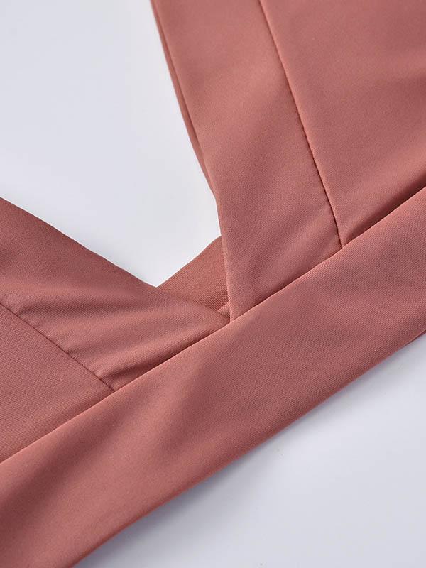 Solid Color Deep V-Neck Bikini Top Swimwear