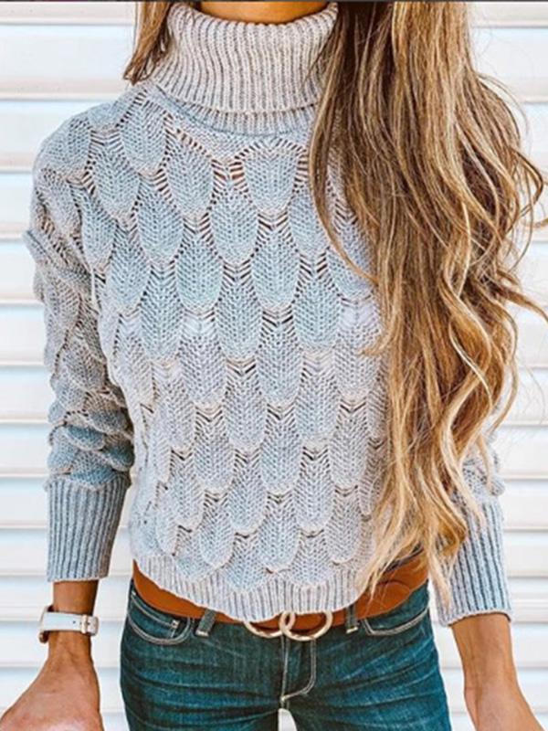 Solid Color High Collar Sweater Tops