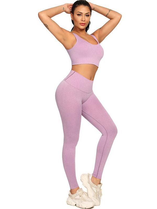 Solid Color High-Waisted Wrap Bra&Leggings Yoga Suits