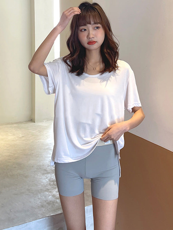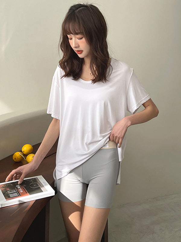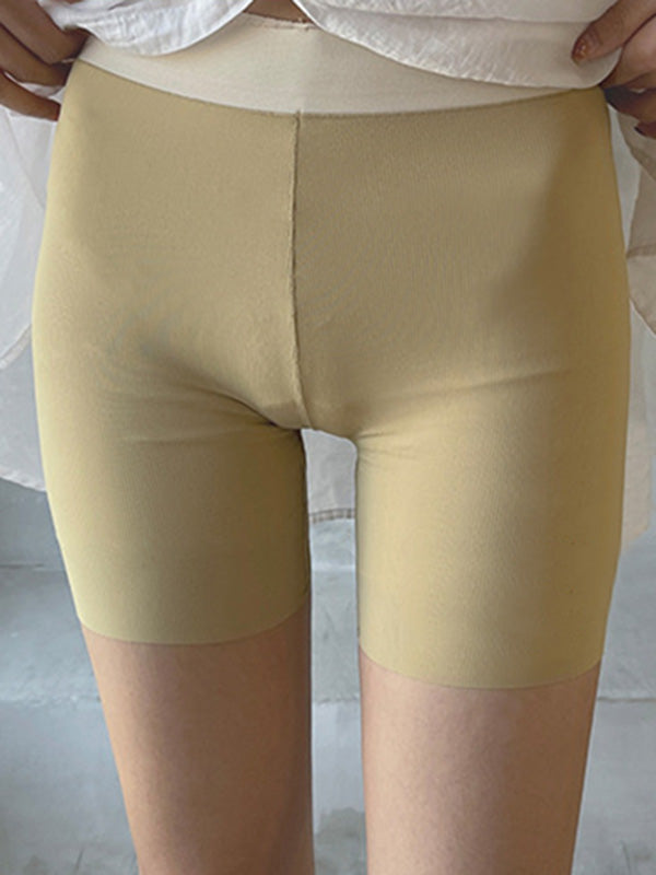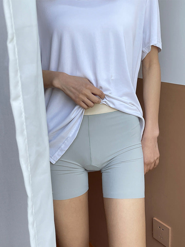 Solid Color Ice Silk Wrap High Waisted Safety Shorts