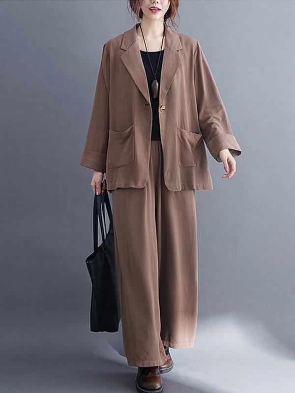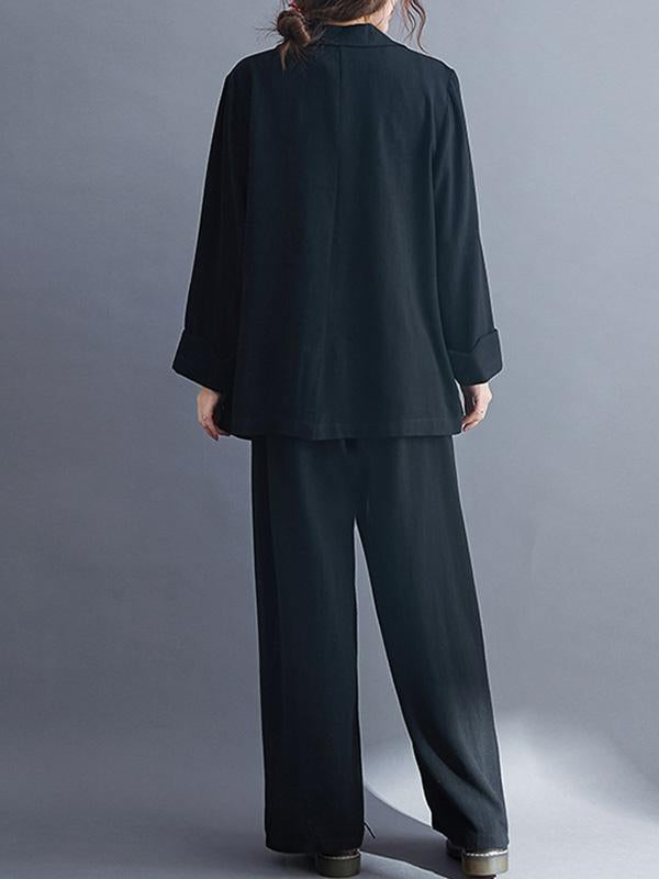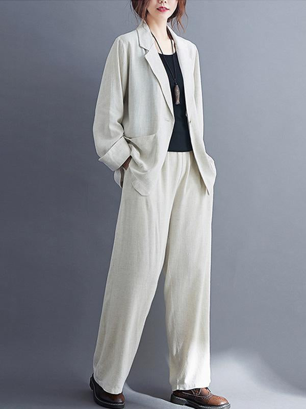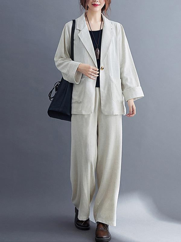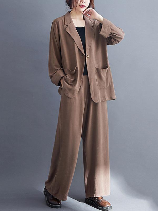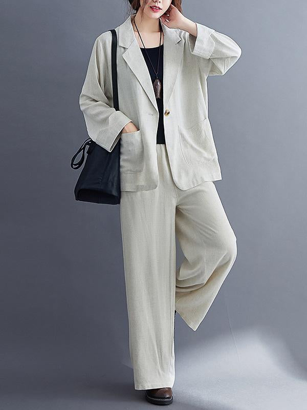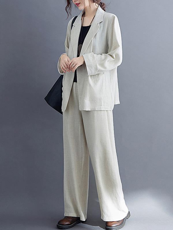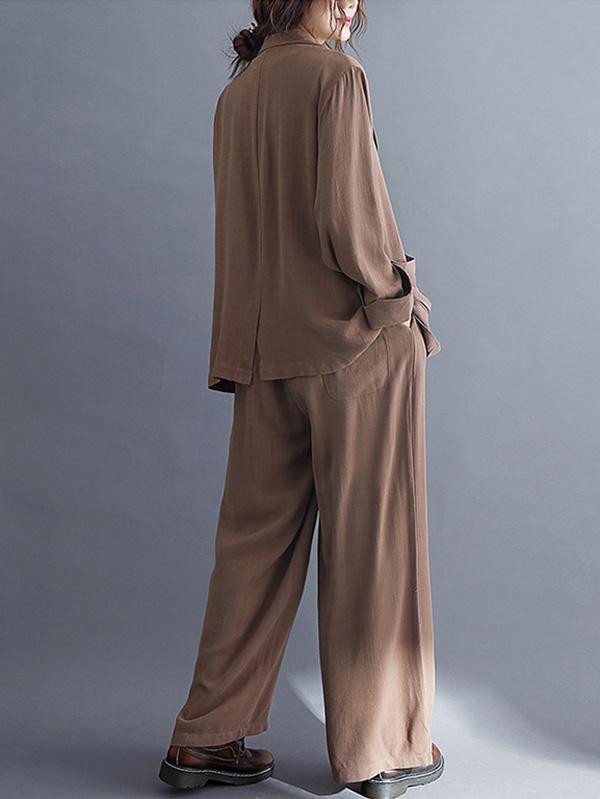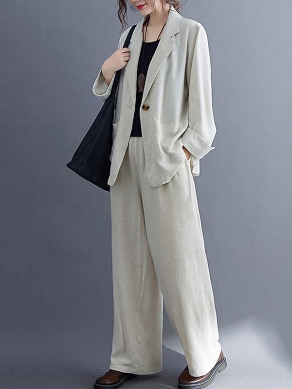 Solid Color Ramie Cotton Suits Top &Wide Leg Pants