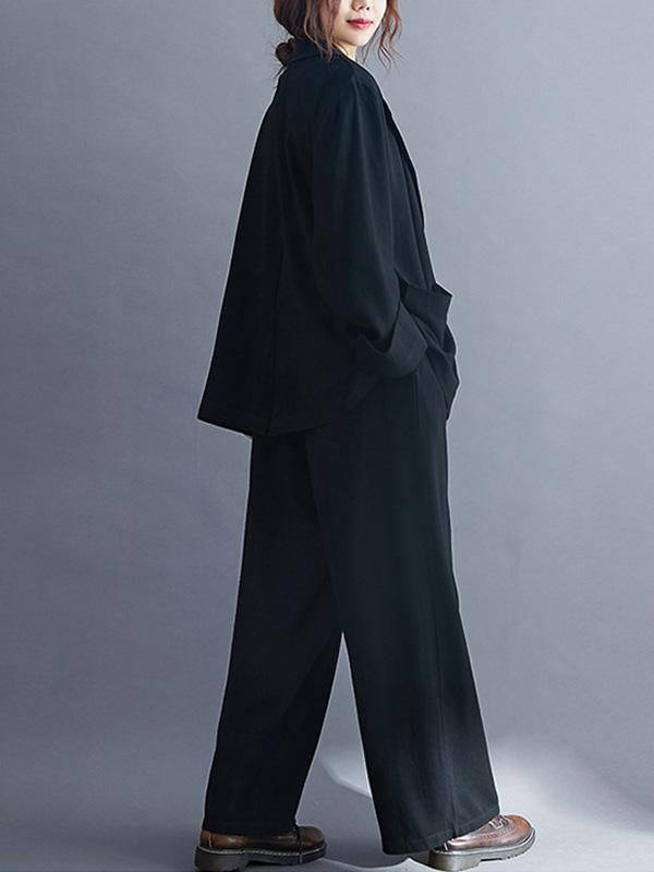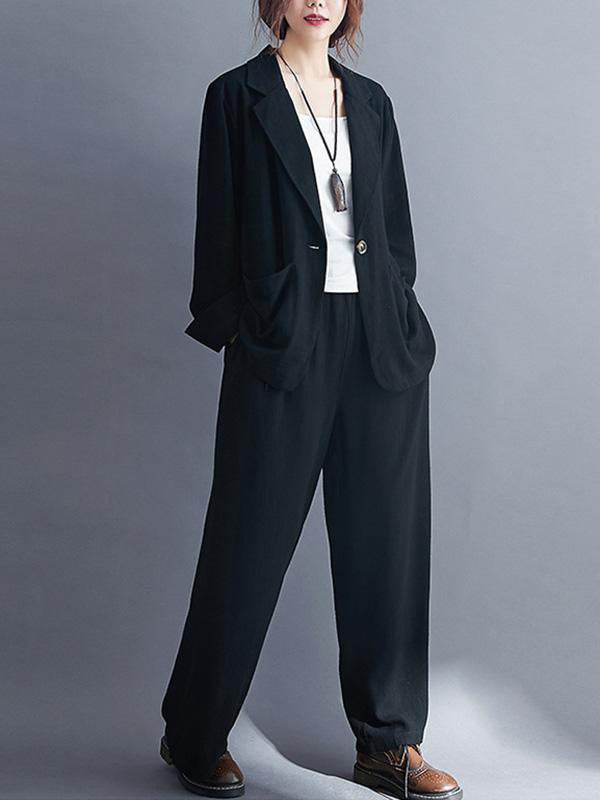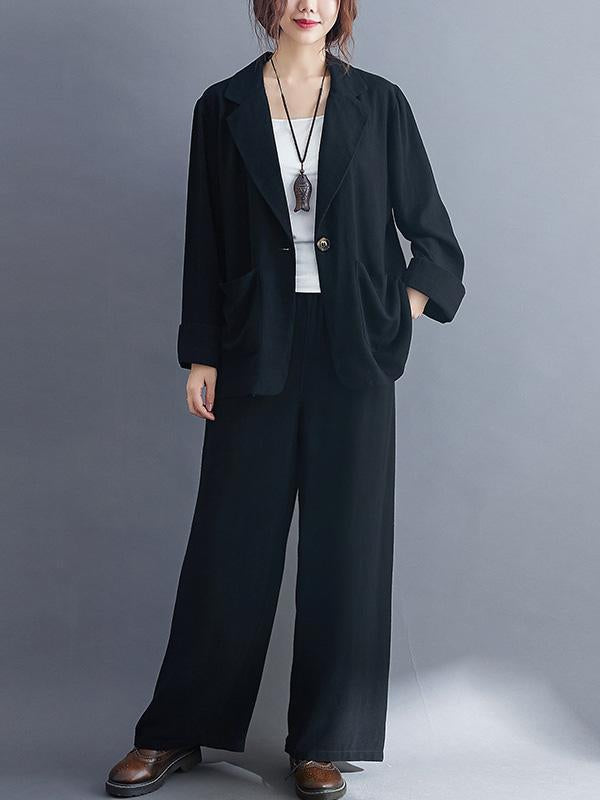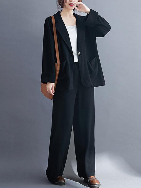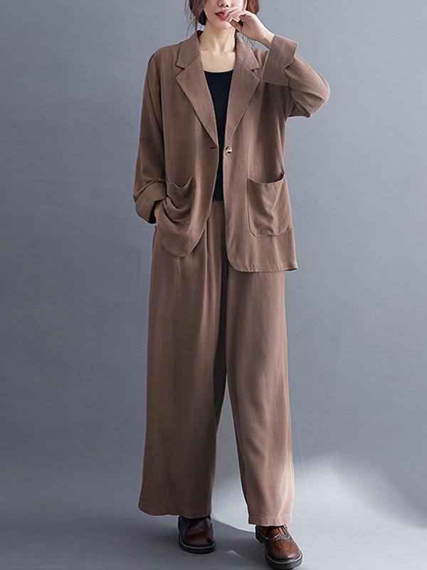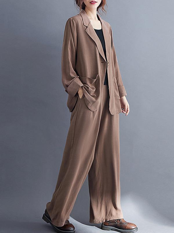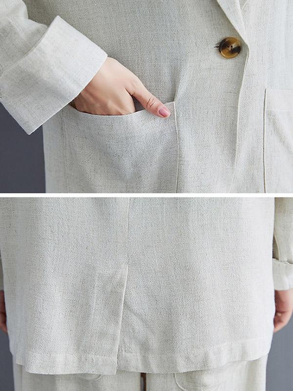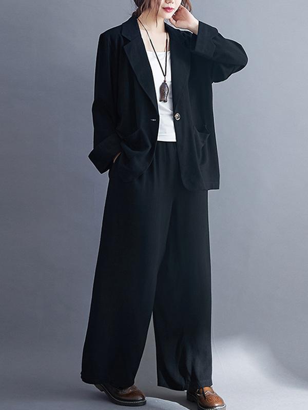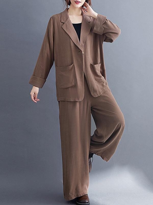 Solid Color Ramie Cotton Suits Top &Wide Leg Pants