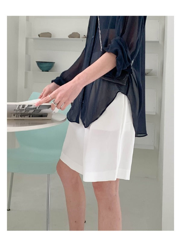 SOLID COLOR SEE-THROUGH LOOSE SHIRT