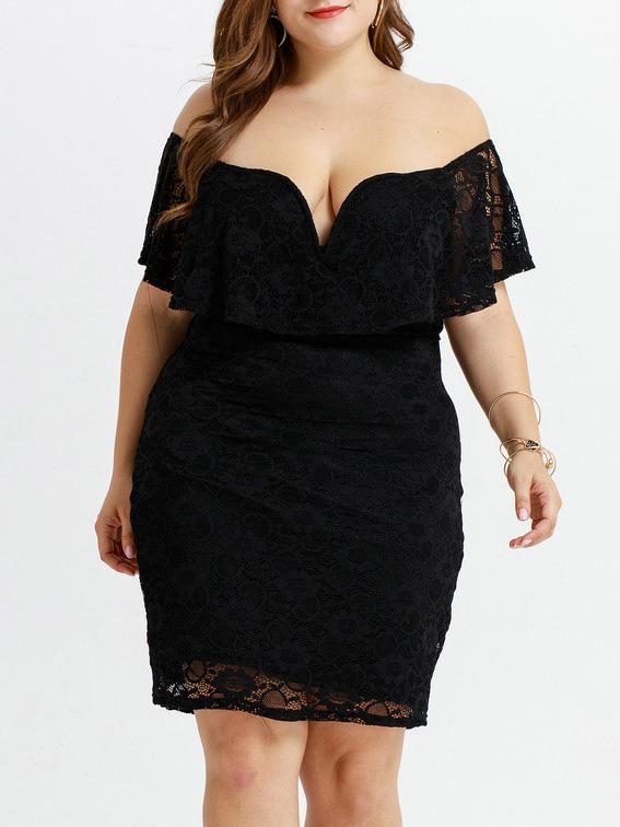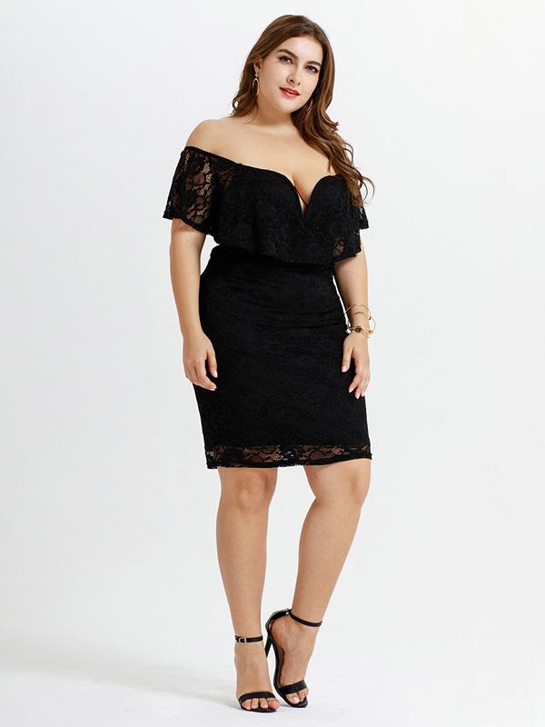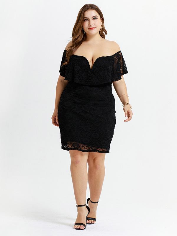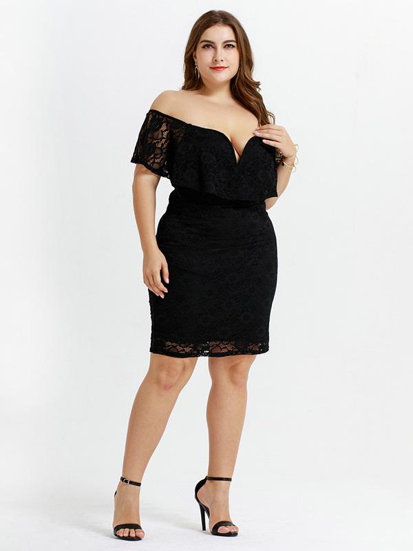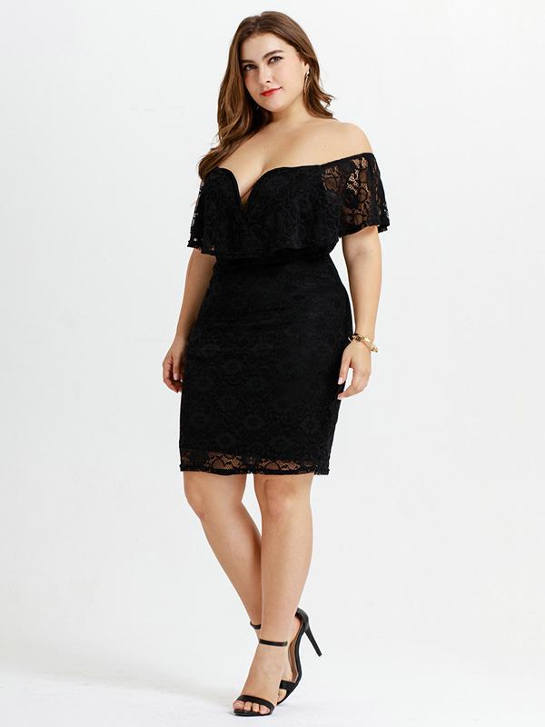Solid Color Short Sleeve Off Shoulder Lace Mini Dress