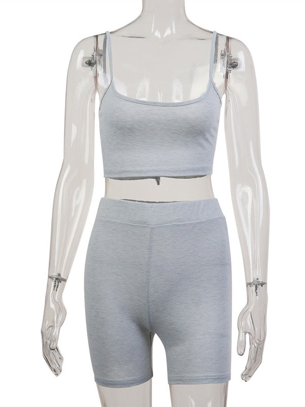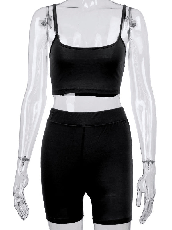Solid Color Spaghetti-Neck Bra&Shorts Suits