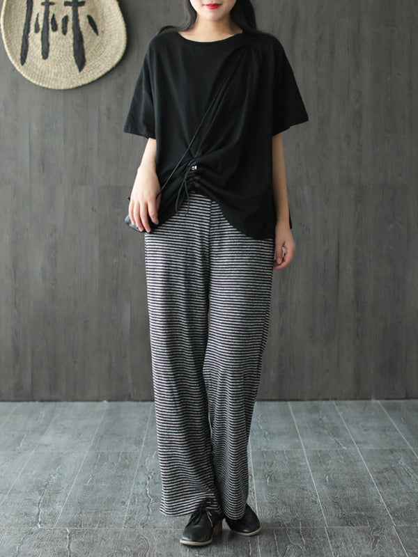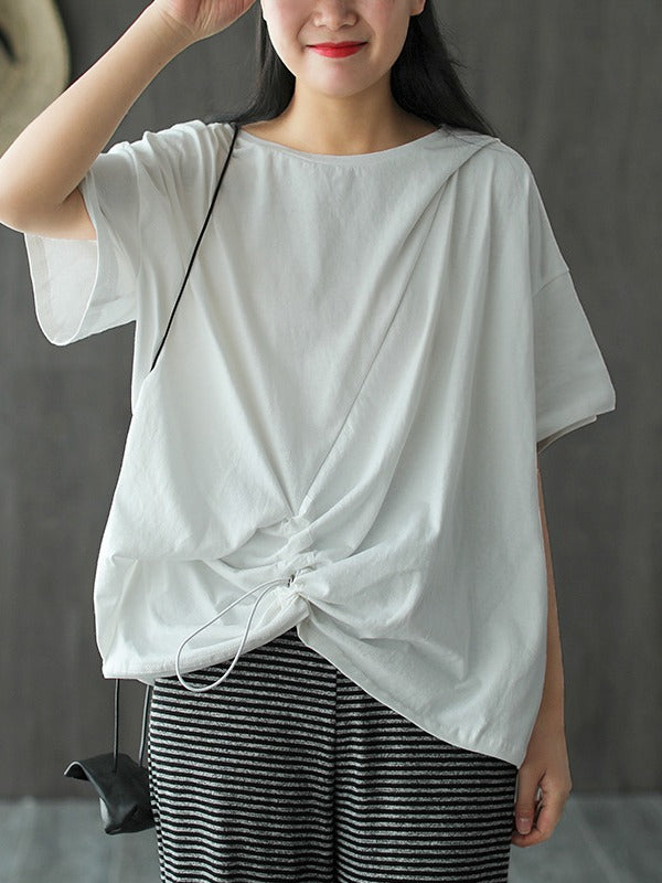 SOLID COLOR SPLICING CROPPED PLEATED T-SHIRT