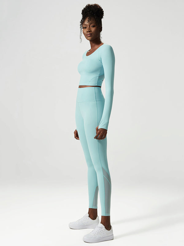 Solid Color U-Neck Long Sleeves Tees&Leggings Suits