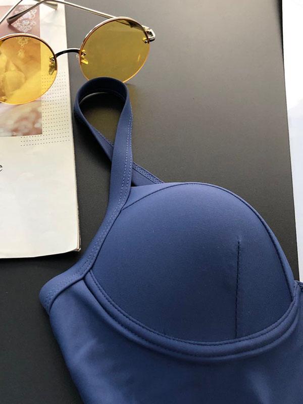 Solid Color Underwired Belted One-Piece Swimwear