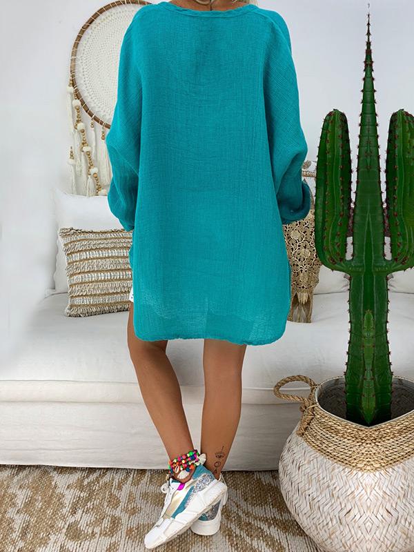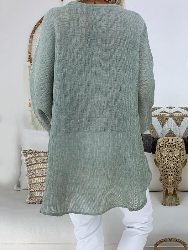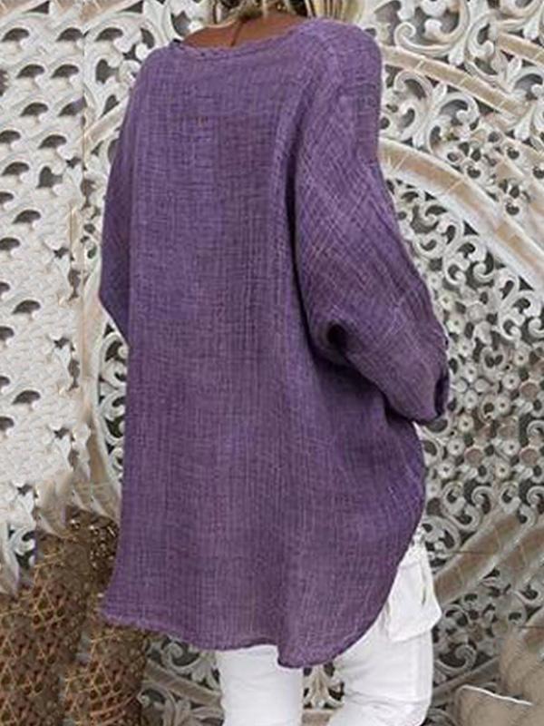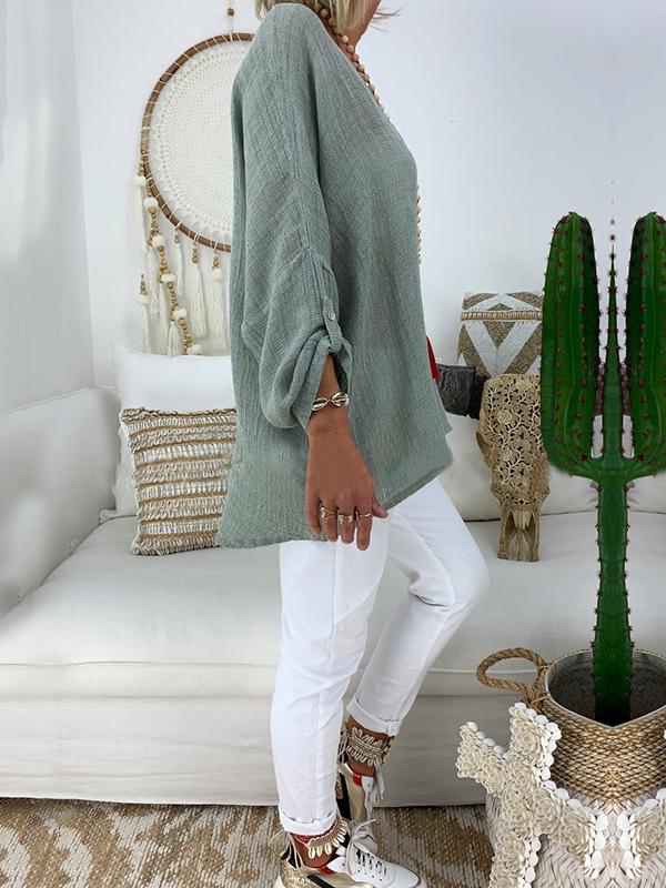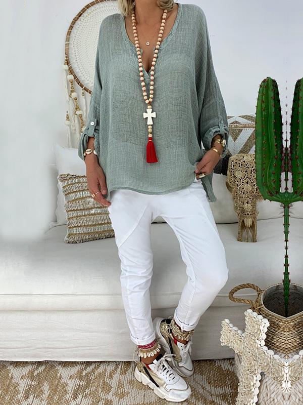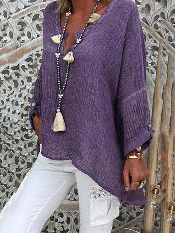 Solid Color V-neck Loose Blouses&Shirts Tops